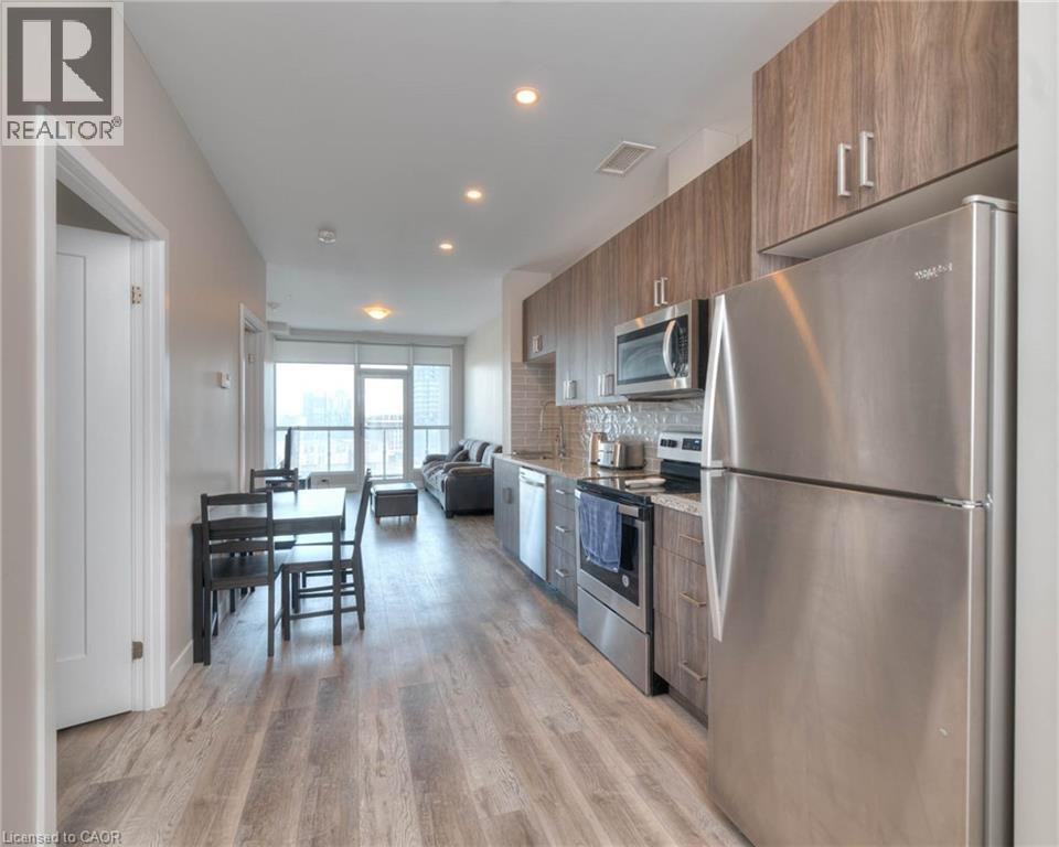 Welcome to unit 802-100 Garment Street! This unit offers a beautifully designed 2-bedroom,1-bathroom condo in Tower 1 of Kitchener’s well-known Garment Buildings. Spanning 933 square feet,this bright and airy space features expansive windows and elevated ceilings that enhance the open-concept design. The layout seamlessly connects a contemporary kitchen—complete with modern finishes and appliances—to a generous living area,creating an ideal setting for both relaxing and entertaining. Two well-sized bedrooms provide comfortable retreats,while the stylish bathroom includes updated fixtures and a sleek shower. Enjoy the added convenience of in-suite laundry,along with one underground parking spot. With nearby access to public transit options,including bus lines and the LRT,commuting is simple. Ideally situated within walking distance to Google,the Tannery Buildings,the University of Waterloo School of Pharmacy,and Victoria Park,this home places you right in the heart of Kitchener’s innovation district. Just a short stroll from downtown,you’ll also be surrounded by a lively mix of restaurants,cultural attractions,and entertainment—perfect for embracing a dynamic urban lifestyle. (id:63800) ID#: 2161263