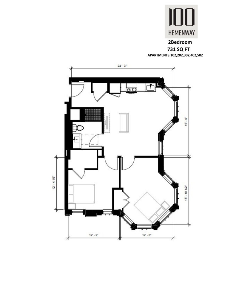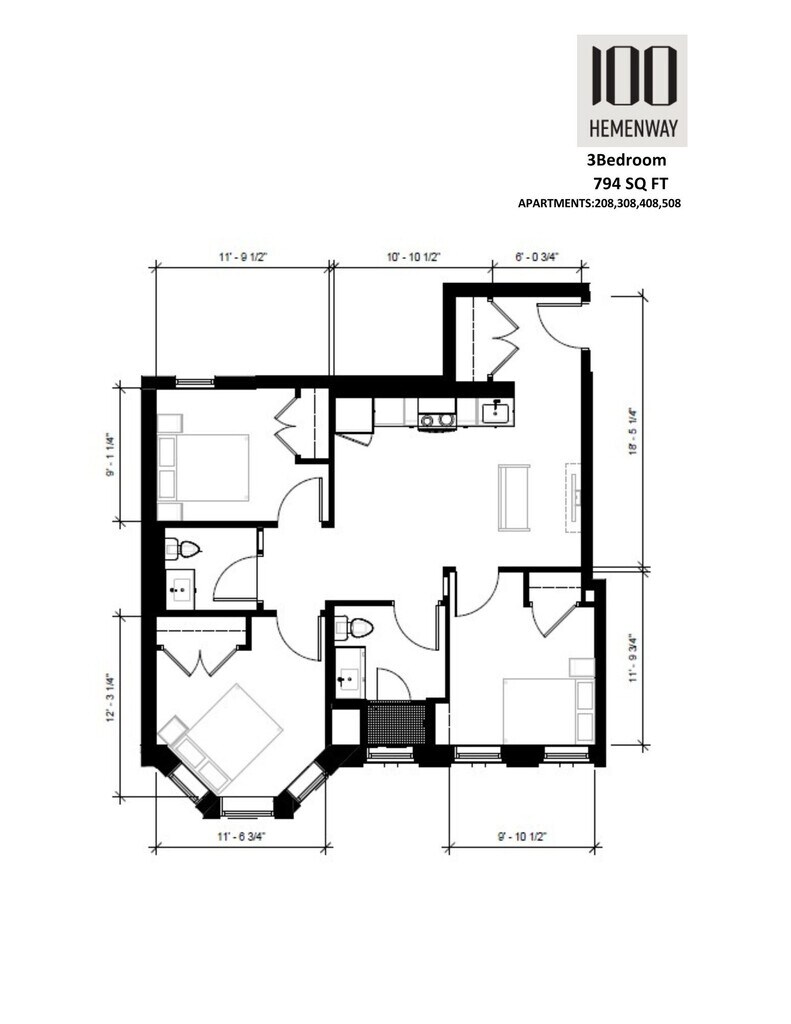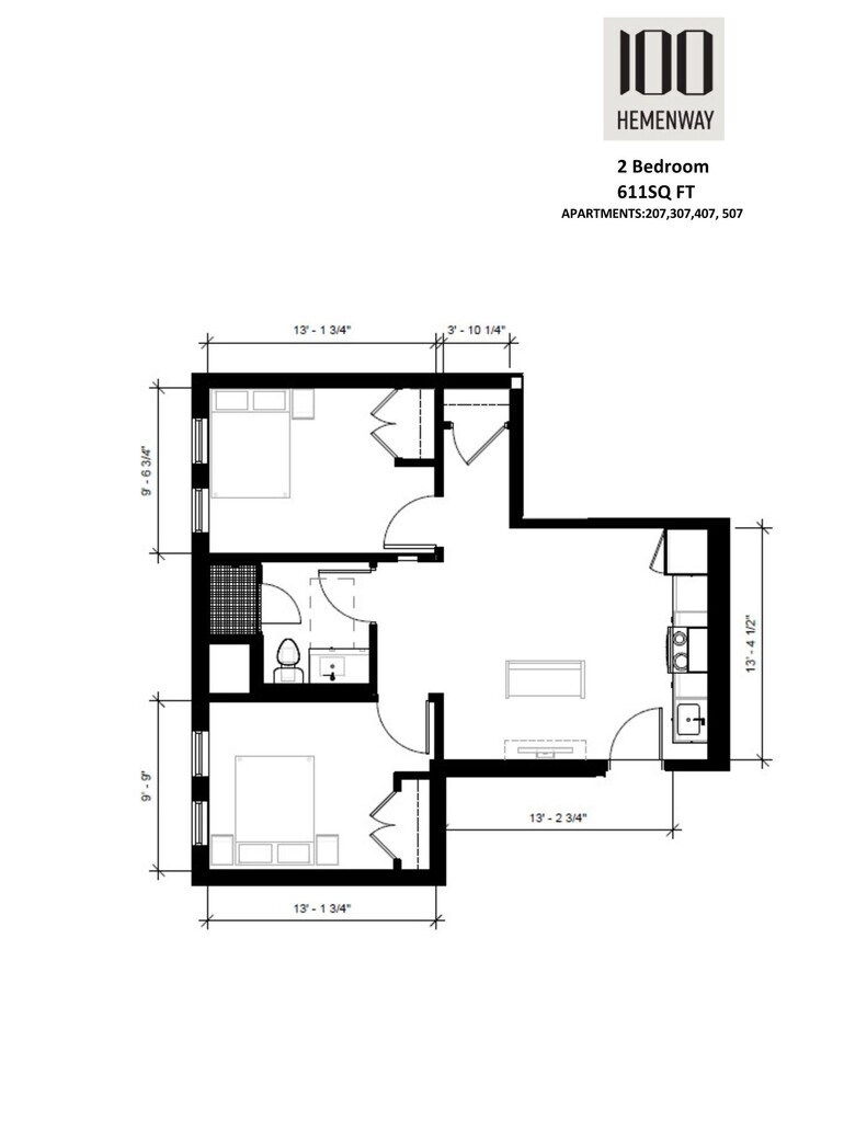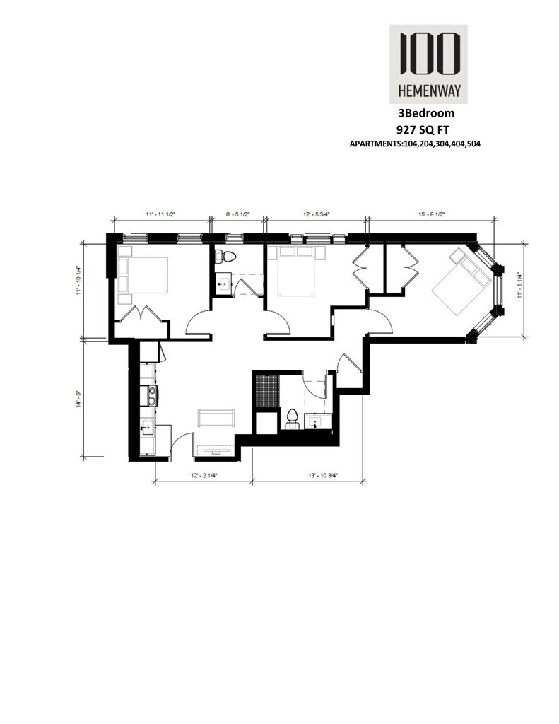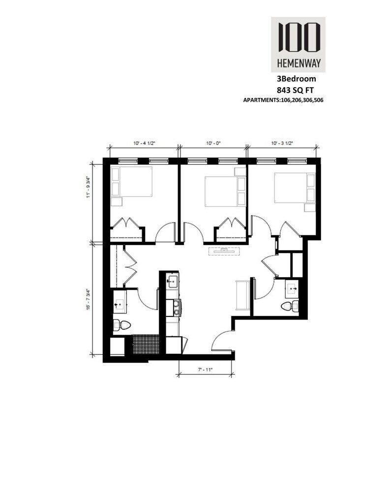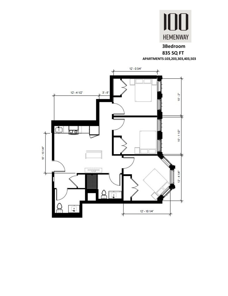 100 Hemenway offers Studio to 3 Bedroom apartments having 372–869 sqft. Here is the current pricing and availability:
