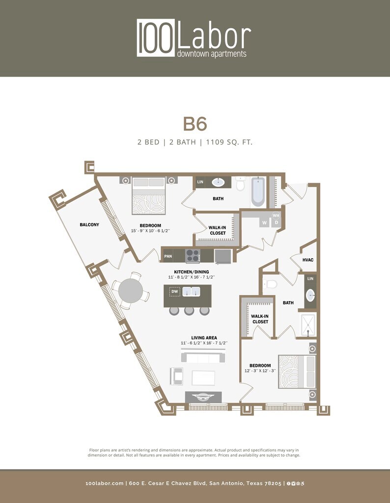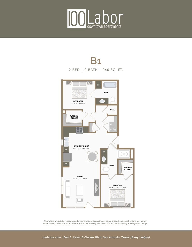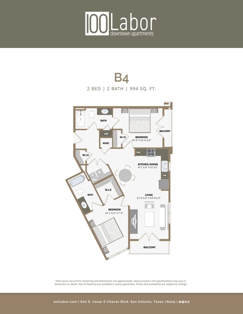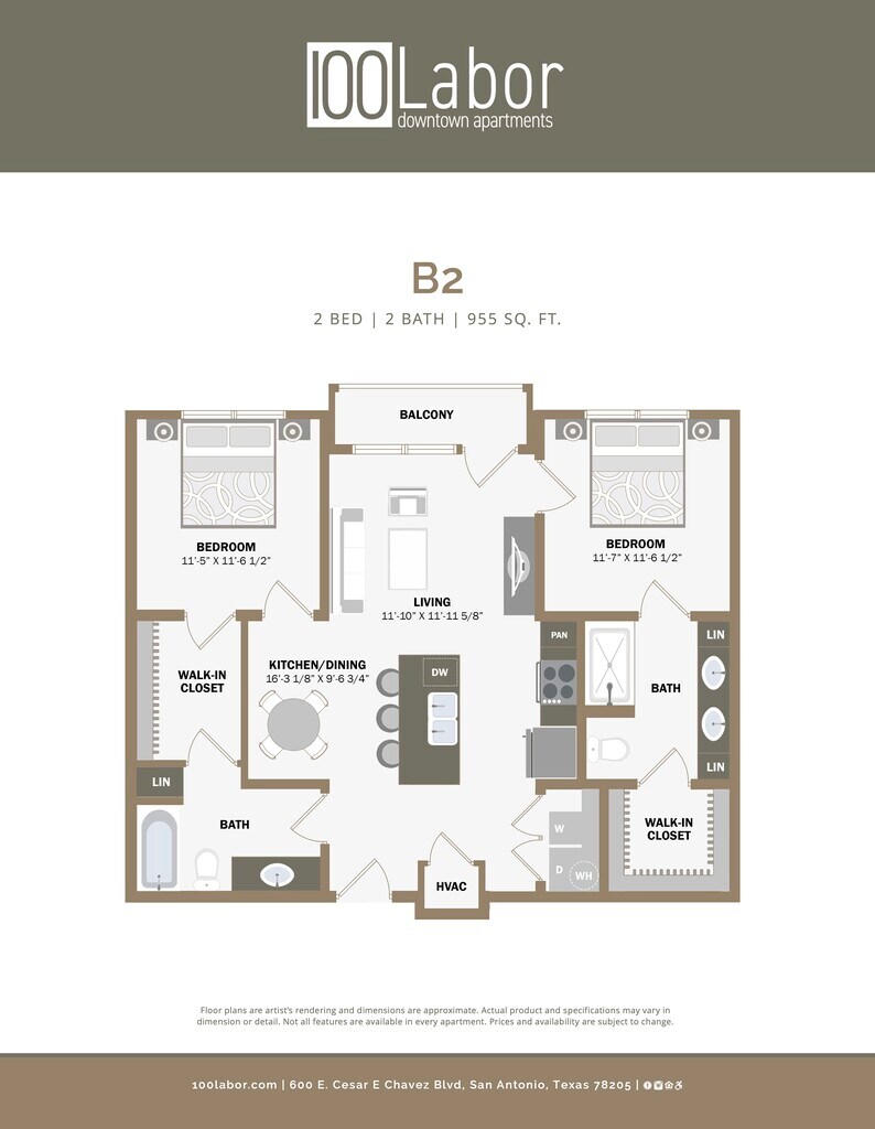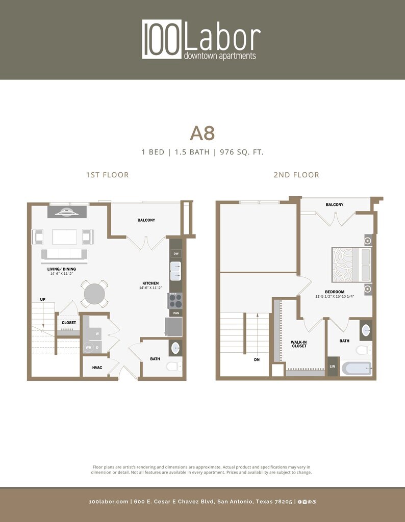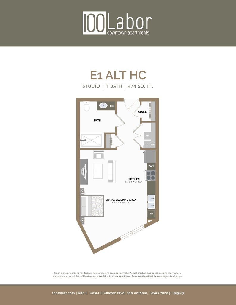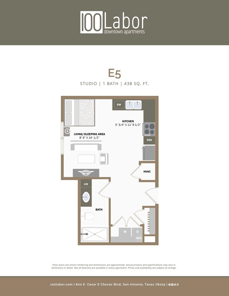 100 Labor Downtown Apartments offers Studio to 2 Bedroom apartments starting from $999 and having 363–1,494 sq ft. Here is the current pricing and availability: