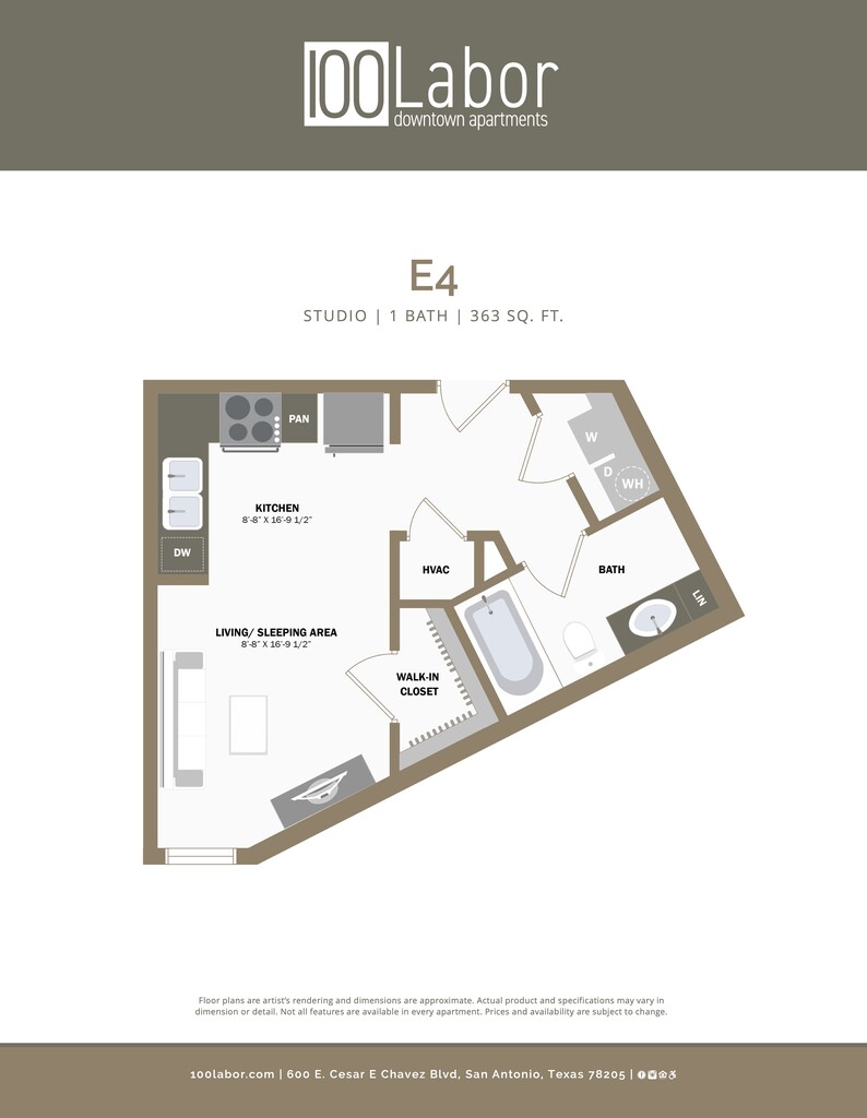 Price Availability Date Unit Sq Ft $1,100 Call for Availability E4 363 sq ft Model Amenities and Features