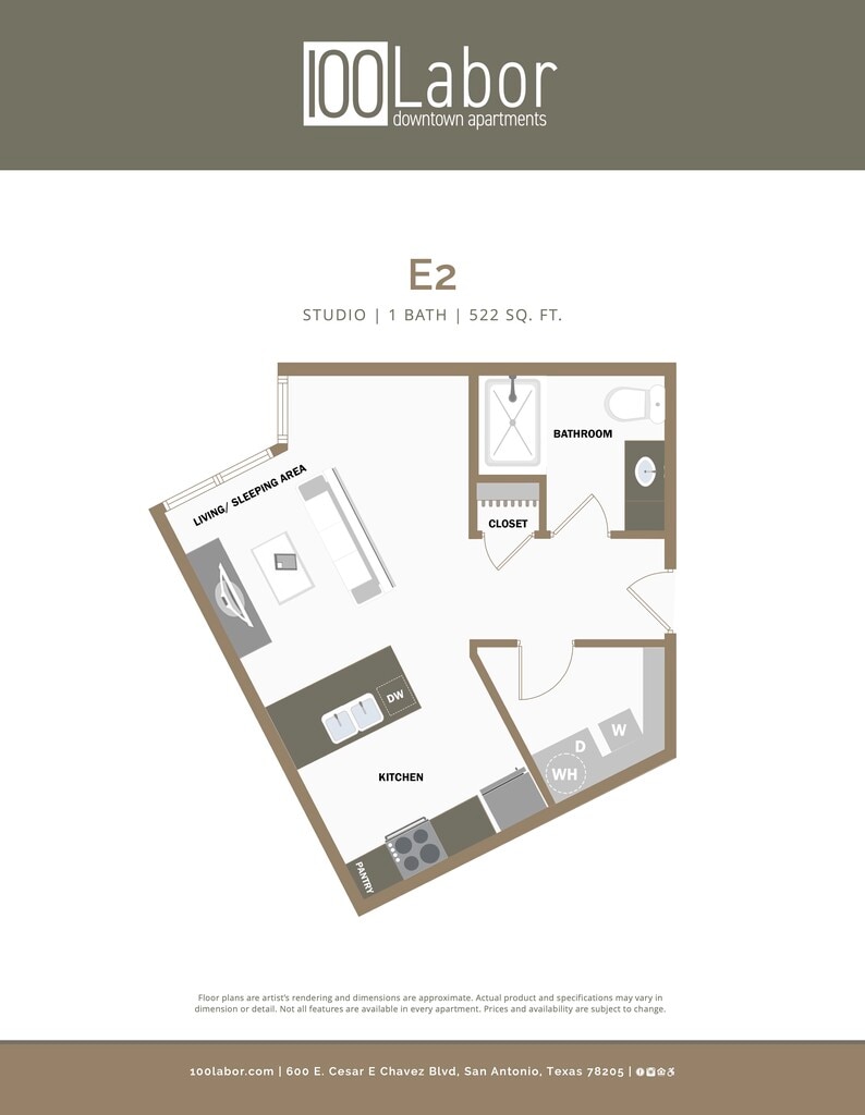 Apartment Model: E2From $1,049Studio, 1 Bath, 522 sq ftAvailable Now![]()