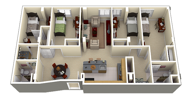2 Bedroom to 4 Bedroom Apartments at 100 Midtown currently range from $1,082 to $1,512