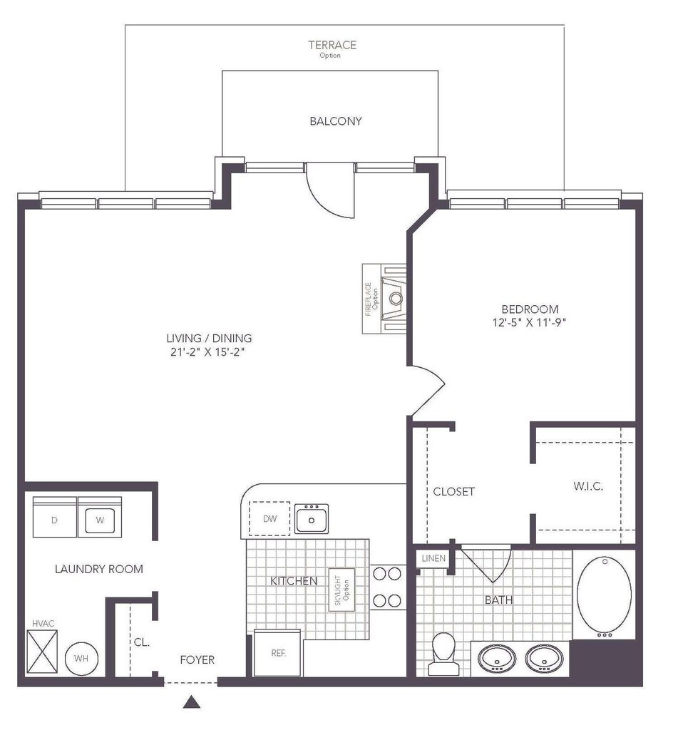 Apartment Model: 1 Bed/ 1 Bath$4,8931 Bedroom, 1 Bath, 768 sq ftAvailable NowFloor plans are artist's rendering. All dimensions are approximate. Actual product and specifications may vary in dimension or detail. Not all features are available in every rental home. Prices and availability are subject to change. Base rent is based on monthly frequency. Additional fees may apply, such as but not limited to package delivery, trash, water, amenities, etc. Deposits vary. Please see a representative for details.