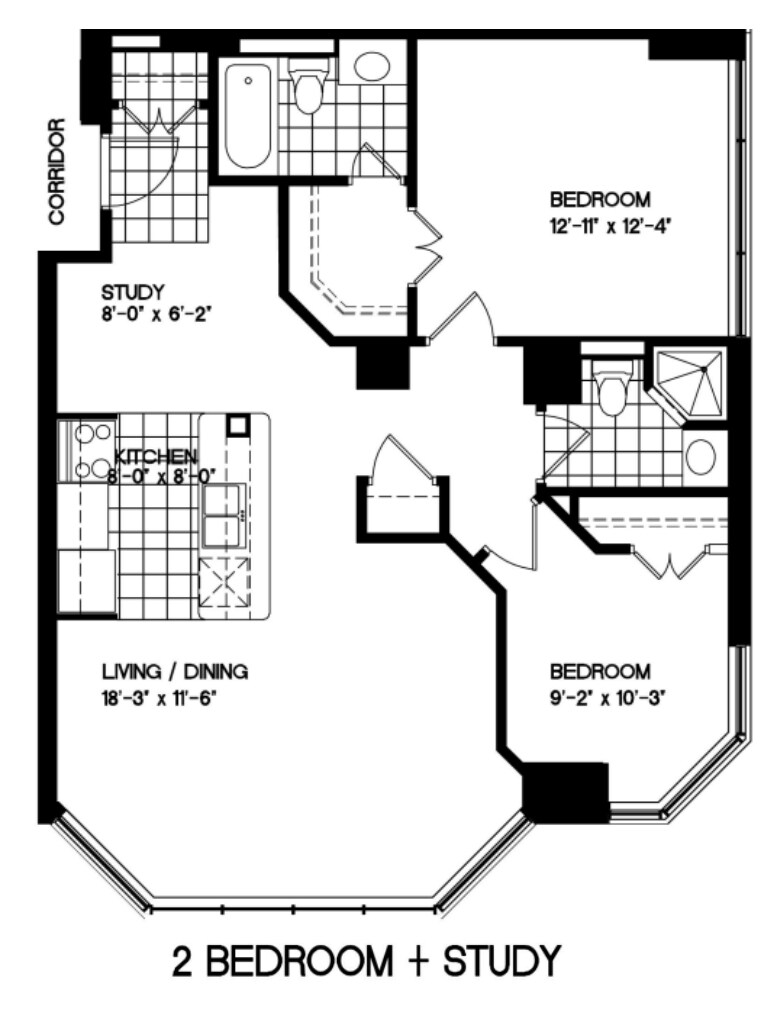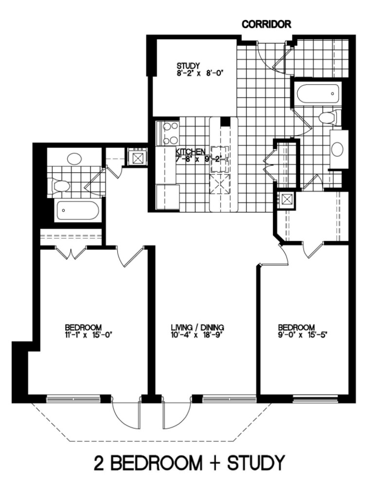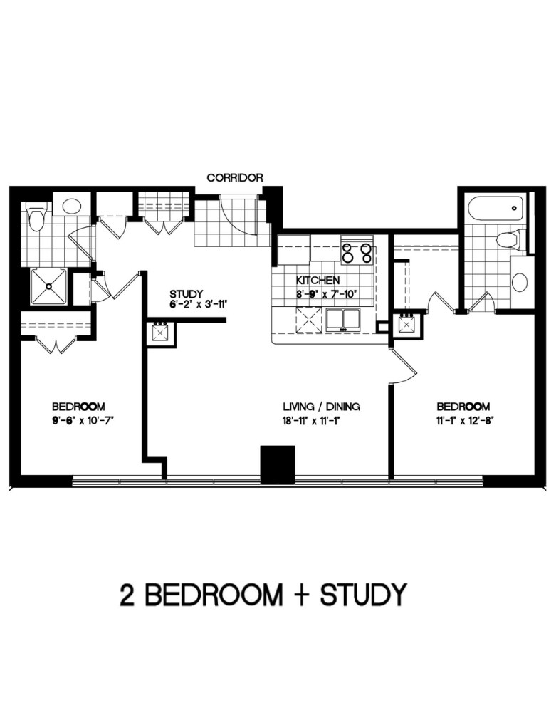 2 Bedroom + Den - Floorplan 5 Apartment Unit: Apartment Model: 2 Bedroom + Den$2,6002 Bedroom, 2 Bath, 933 sq ftAvailable May 1, 20262 Bedroom