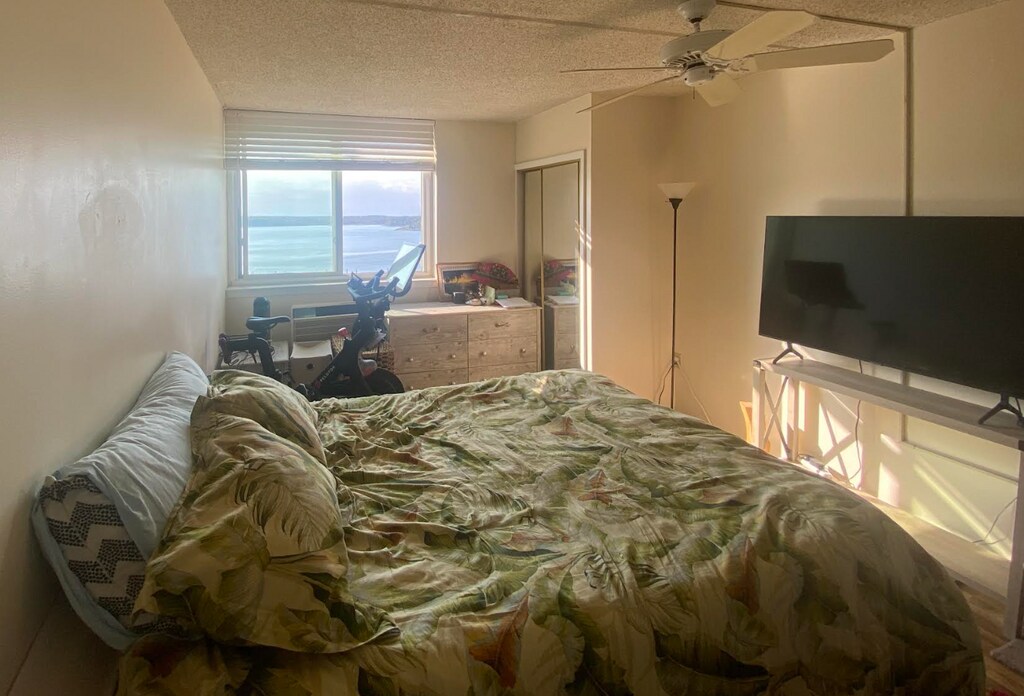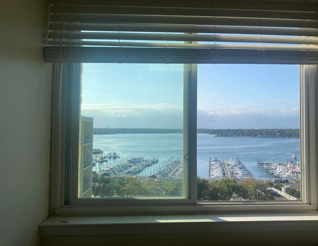 Great location. Water front view. Top floor. High-rise apartment. Spacious. Tons of natural light. Lots of storage space. Fully furnished with all new amenities and flat screen TVs. New floors and painted walls.