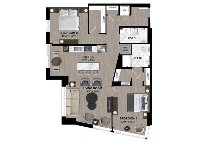 Apartment Model: B1.8From $3,1842 Bedroom, 2 Bath, 1158 sq ftAvailable Now![]()