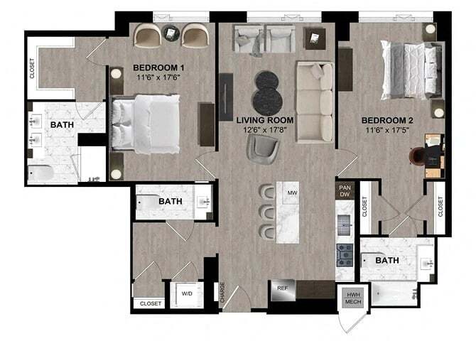 Apartment Model: B2.2From $3,6992 Bedroom, 2.5 Bath, 1304 sq ftAvailable Now![]()