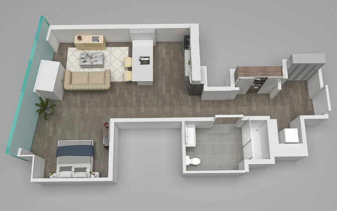 Studio, 1 Bath, 608 sq ftAvailable NowModel Gallery