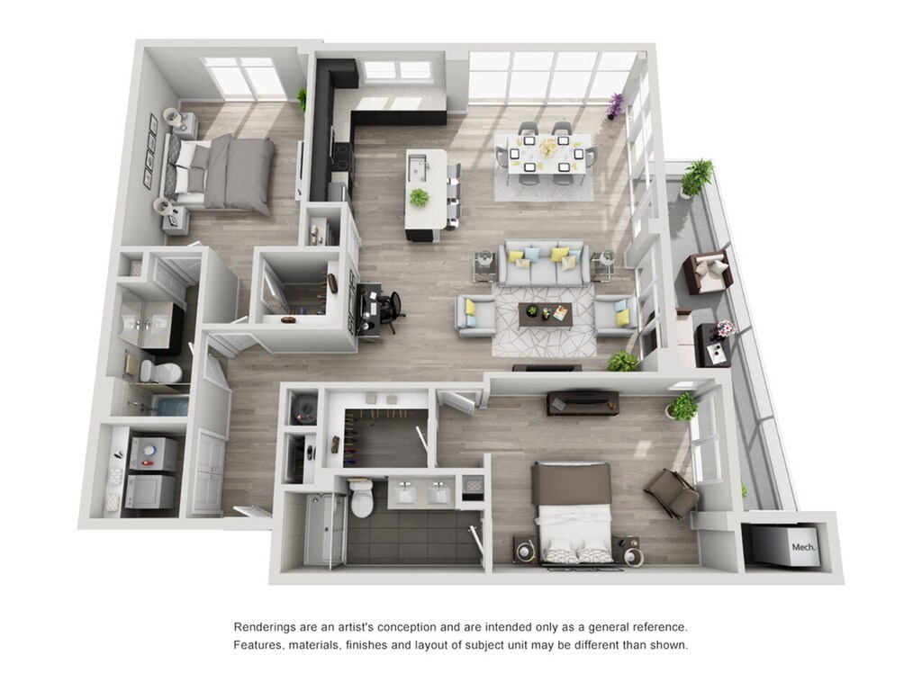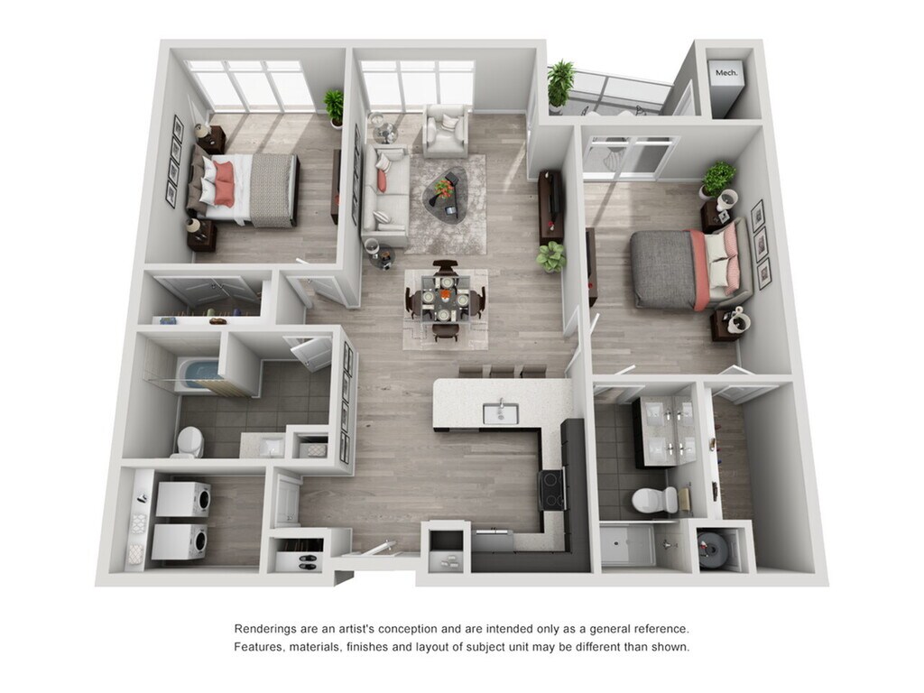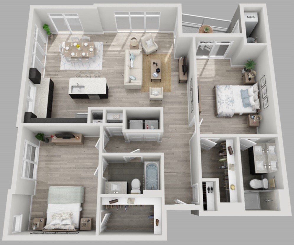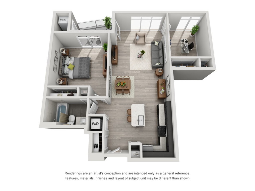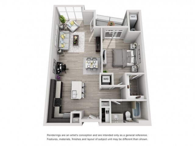 1 Bed, 1 Bath, 727 sq ftModel Gallery