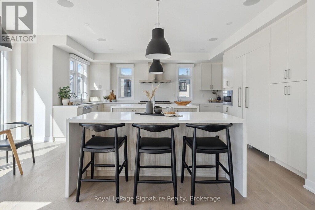 Available for annual lease! (Unfurnished) Nestled in the desirable Blumont development,this meticulously crafted 6-bed,5-bath home spans over 5,000 sq ft. This exquisite home seamlessly blends luxury,comfort,and elegance. Step inside to a grand open-concept design with soaring ceilings and beautiful wood beam accents. Thoughtfully designed with high-end finishes,it offers the perfect setting for entertaining and hosting guests. The fully custom kitchen is equipped with built-in Thermador appliances,a premium 48" chef-style range,double islands,two sinks,and two dishwashers,all seamlessly flowing into the living and dining areas.The spacious primary suite offers breathtaking hill views and a stunning ensuite,while each bedroom is generously sized and features direct ensuite access for ultimate convenience. Guest rooms open to a wraparound deck and private covered patios,enhancing outdoor relaxation. Two mid-level spaces provide flexibility for a home office,wine room,or game area. Additional highlights include professional surround sound,automated Hunter Douglas window treatments,custom cabinetry,a security system,and a finished basement with 9 ft ceilings complete with two bedrooms,a bathroom,and an oversized recreation area with a wet bar. Ideally located near walking trails,golf courses,and private ski clubs,this home also offers access to the Blue Mountain Village Association,including shuttle service,a private beach,and exclusive local perks. (id:52069) ID#: 2183668