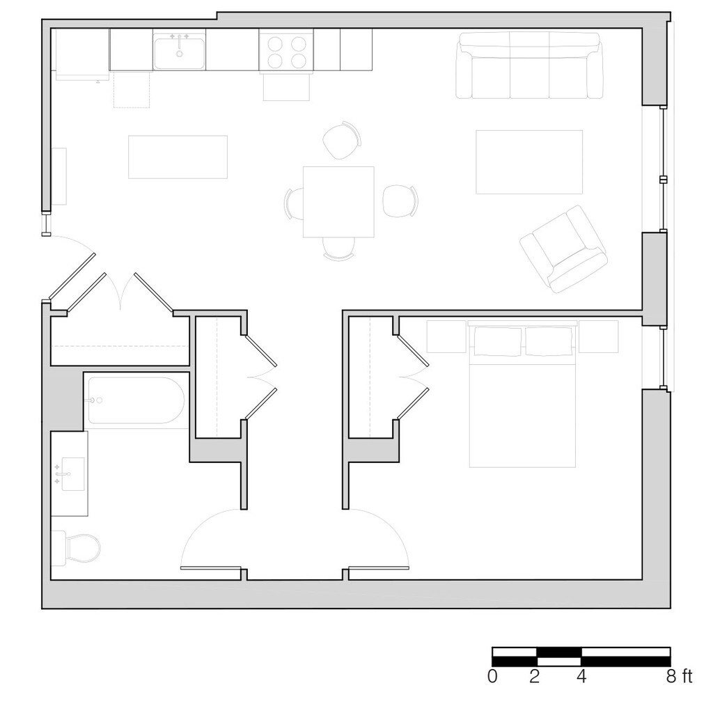 1 Bed, 1 bath - Floorplan 1 1 Bed, 1 bath