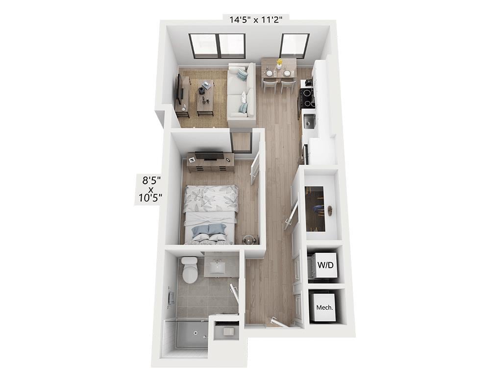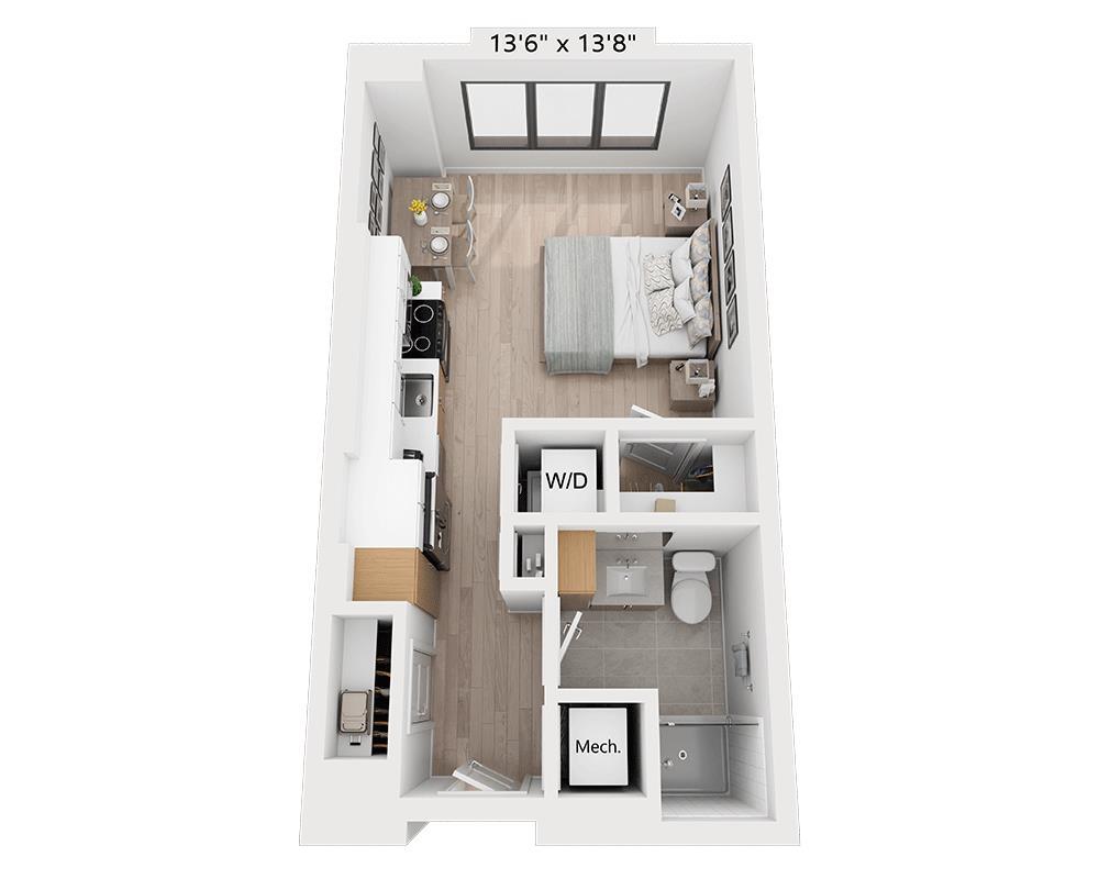 Apartment Model: Studio - E1AFrom $1,906Studio, 1 Bath, 464 sq ftAvailable NowFloor plans are artist's rendering. All dimensions are approximate. Actual product and specifications may vary in dimension or detail. Not all features are available in every rental home. Please see a representative for details.