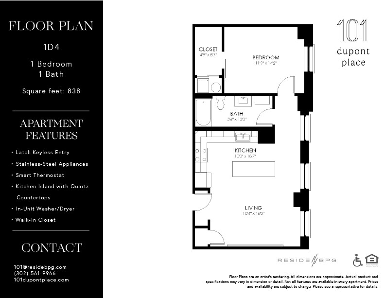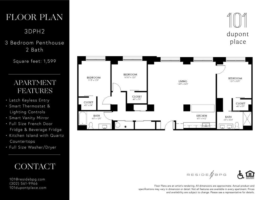 101 dupont place offers Studio to 3 Bedroom apartments starting from $1,600 and having 488–1,704 sq ft. Here is the current pricing and availability: