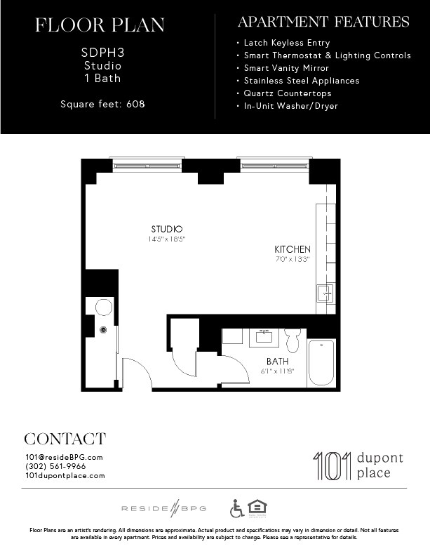 SD1 - Floorplan 1 Apartment Unit: 1211Apartment Model: SD1From $1,600Studio, 1 Bath, 488 sq ftAvailable NowSDPH3