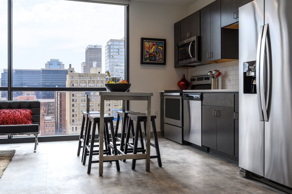 Welcome to 1010 On The Rhine Apartments, the premier apartments for rent in Cincinnati, Ohio! As a resident, you'll enjoy modern interior design in our studio, one, and two bedroom apartments, along with an extensive selection of unparalleled amenities. All of our floorplans offer high-end features and sleek finishes, such as concrete-inspired flooring, floor-to-ceiling windows with unobstructed city views, gourmet kitchens with stainless steel appliances and quartz countertops, exposed concrete columns, walk-in closets, walk-in showers with floor-to-ceiling subway tile, and washers/dryers in-unit. Select homes include large private balconies. Wi-Fi and cable are built-in, so they're ready to use right when you move in! At 1010 On The Rhine Apartments, you’ll experience an array of upscale amenities focused on comfort and luxury. Take advantage of our rooftop deck with beautiful city views, a lounge space, work space, and grilling station. We know you'll also love our state-of-the-art fitness center, pet wash station, dry cleaning concierge, and so much more! Kroger On The Rhine and On the Rhine Eatery are located on the first and second floors of the building and residents will enjoy access to free at-home delivery of six local restaurants that are also located on the second floor. Choose the floorplan that fits your lifestyle and take a walkthrough video tour, or call our friendly leasing staff to schedule a tour. Come home to 1010 On The Rhine Apartments today!