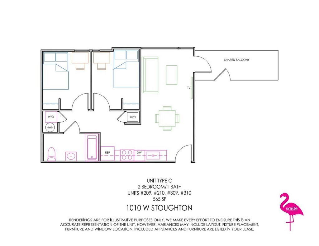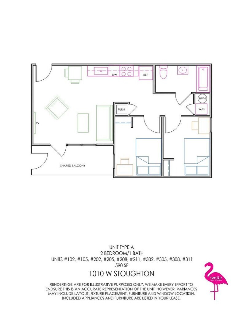1010 Stoughton features a variety of units ranging from 1-bedroom, 2-bedroom and 3-bedroom options! This location also has select renovated units. Utility fees will range based on unit size, but utilities included are water, internet, sewer, trash and recycling! Two pets allowed with a $250/pet non-refundable fee and $25/pet monthly rent. 1010 Stoughton is conveniently located on the UIUC campus near Engineering Quad and more! These units feature a dishwasher, so no more wasted time hand-washing your dishes! Spend that free time on the balcony overlooking the beautiful campus sunset.