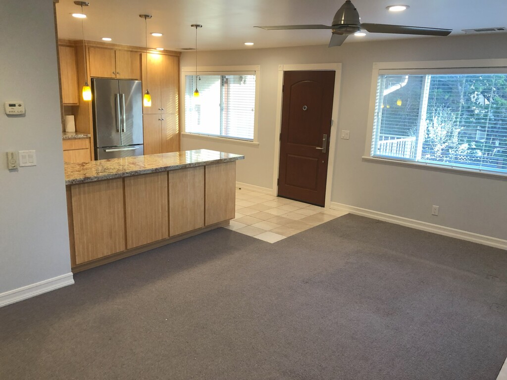 The building is built with high quality non-toxic materials throughout. Cabinets, furniture, and appliances are all high end. Yard includes fruit trees, vegetable garden, lawn, and common courtyard. Neighborhood is safe and quiet and perfectly suited for walking, running, or cycling. Near schools, shopping, restaurants, and freeway access. Owner pays for garbage, renter pays all other utilities, no pets, no smoking on premises, first month rent and deposit due upon signing lease, 12 month lease, quiet and clean tenants only please.