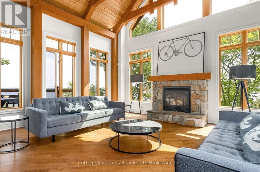 Welcome to Muskoka Blue,the perfect modern getaway to relax and recharge. Located less than 2 hours from the GTA,this stunning cottage feels worlds away. Experience and enjoy the awe-inspiring connections to nature you can only find on the beautiful south shore of the prestigious Lake Muskoka. With over 2,700 sqft. of living space this 5 bedroom,3 bathroom retreat is the ultimate vacation getaway boasting 21 ft. vaulted ceilings,a cozy stone fireplace,a screened-in Muskoka room and expansive decks capturing the breathtaking long views of Lake Muskoka. The gorgeous chefs kitchen features a large centre island ideal for entertaining,stainless steel appliances,and Quartz countertops. The private cantilevered dock offers easy access for boating,swimming and exploring the Big Three lakes - Muskoka,Rosseau and Joseph. The large outdoor entertainment space is deal for bringing family and friends together with a large granite fire pit area,outdoor dining,and privacy from neighbours. The property comes fully equipped with everything you need to relax and enjoy. Weekly cleaning is included with the stay. $38,000/month for July,August; $14,000/month for March,April,May; $23,000/month for June. Reach out to learn more. (id:52069) ID#: 2039553