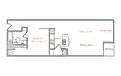 Apartment Model: Studio 1From $1,199Studio, 1 Bath, 630 sq ftAvailable NowFloor plans are artist's rendering. All dimensions are approximate. Actual product and specifications may vary in dimension or detail. Not all features are available in every rental home. Please see a representative for details.