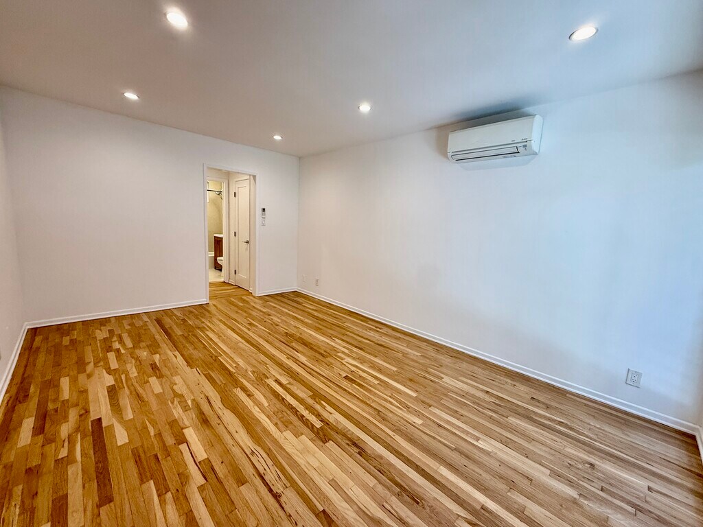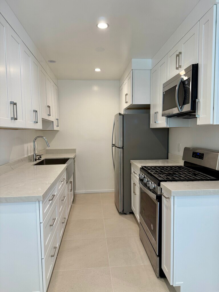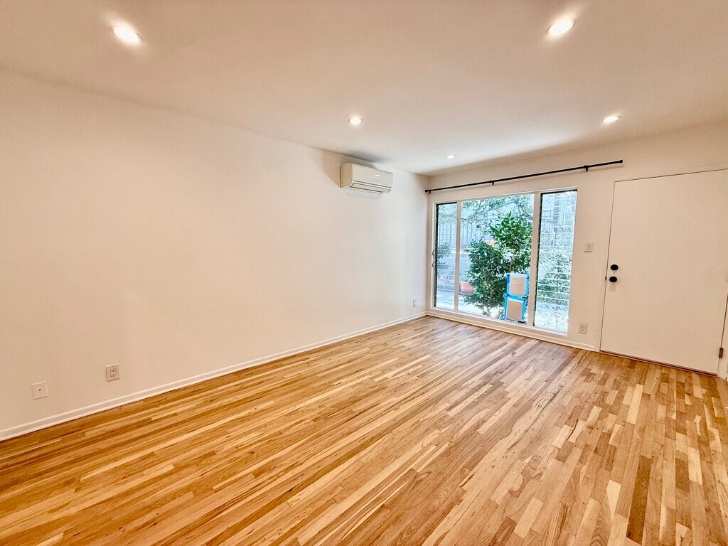 Charming 1 bedroom, 1 bath ground unit with minisplit A/C and Heating System and one carport parking included. White Shaker Cabinet Kitchen with quartz countertops come with appliances including dishwasher, refrigerator and stove. White Oak Hardwood Floors and recessed lights throughout. Porcelain Tiled Bathroom with beautiful wood vanity, Hansgrohe Faucets and Toto Toilet. Shared laundry room on premises. Located north of Wilshire.