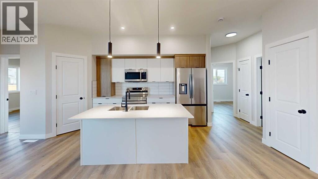 3 bedroom,2 bathroom upper unit located in Royal Oaks North!Open concept floor plan,kitchen features upgraded stainless steel appliances,a pantry for additional storage and white cabinetry. Electric fireplace in the living room. Primary bedroom features a walk-in closet and a full en-suite. Large back deck. Vinyl plank throughout - no carpet! Private in-suite laundry in the basement. Single car attached garage insulated,not heated. Fenced and separated yards!Water,Gas,and Electricity will be included for an additional $350/mo flat rate. Pet friendly with approval and $50/mo pet fee.Application required prior to viewing. (id:52069) ID#: 2058735