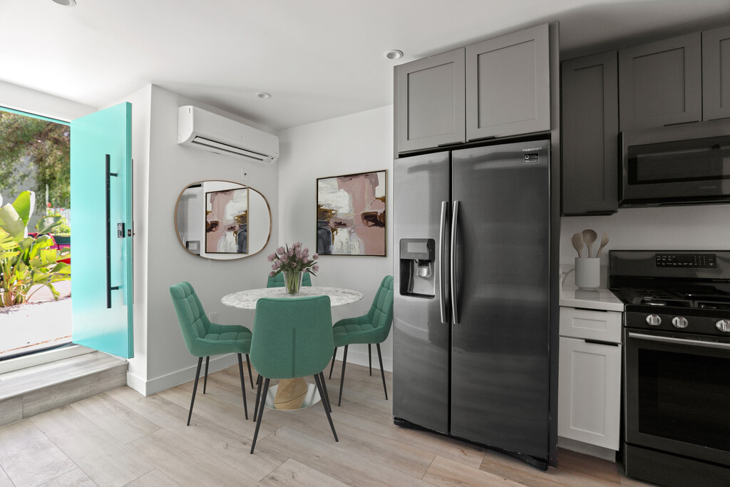 Inspired by Mediterranean and Spanish Revival-style architecture and enhanced by deep red tones and polished wood textures that contrast with stark white walls, these classic restored Santa Barbara-style rental homes are minutes to the thriving Arts District and Downtown Los Angeles. 1023 Tremont Street, located in the heart of Boyle Heights, features a five-unit, two-story low-rise building. This charming, gated community features a courtyard, private entryways, balconies, red tile roofs, and remote-controlled garage parking. Carefully restored and designed by a renowned LA designer, these 1920s modern rental homes feature keyless entry door locks to spacious two-bedroom floor plans with new kitchens and bathrooms. The kitchen boasts sparkling white stone quartz countertops with brand new self-closing cabinetry and high-end stainless-steel refrigerators with matching gas cooktop with oven and microwave. iRing doorbells with a smart home video security camera are also included. Bathrooms feature porcelain tiled bath tubs and glass shower doors. Each rental home also includes central A/C cooling and heating with recessed lights with luxury style cellular shade window blinds, distressed wood plank floors, and dual sliding barn doors. Located east of Downtown LA, Boyle Heights is one of LA's most historic and vibrant neighborhoods and minutes off the 5, 10, and 710. One of the city's most notable and historic communities and known as a bastion of culture, hosting cultural landmarks like Mariachi Plaza and events like the annual Día de los Muertos celebrations. The neighborhood has one of the most diverse and oldest histories of any neighborhood in LA. Boyle Heights is also home to the famous Mariachi Plaza which holds yearly community events like the La Santa Cecilia Festival and Sunday’s Boyle Heights Community Market. Within one mile of the Tremont Apartments is the USC Medical School, Pharmacy School and Health Science Campus. 1023 Tremont Street has a Walk Score of 77 out of 100. This location is Very Walkable so most errands can be accomplished on foot. This location is in the Boyle Heights neighborhood in Los Angeles. Nearby parks include Wabash Recreation Center, Wabash Playground and Ramona Gardens Park. Drake Real Estate Group | Welcome home | Schedule your private viewing today | | EXTERIOR | - Newly Modernized Façade - City Approved & Completed Earthquake Seismic Retrofit - Keyless Electronic Entry | INTERIOR | - Cellular Shade Window Blinds - Spacious Designer Floor Plan - Vinyl Plank Flooring | KITCHEN | - Modern Designer Cabinetry - Quartz Countertops - Stainless-Steel Appliances - Refrigerator - Range w/ Oven - Microwave - Open Kitchen Space Layout | BATH | - Tiled Shower and Bath - Glass Shower Doors - Oversized Vanity Mirror | AMENITIES | - Washer & Dryer (in unit) - Assigned Parking - A/C Units