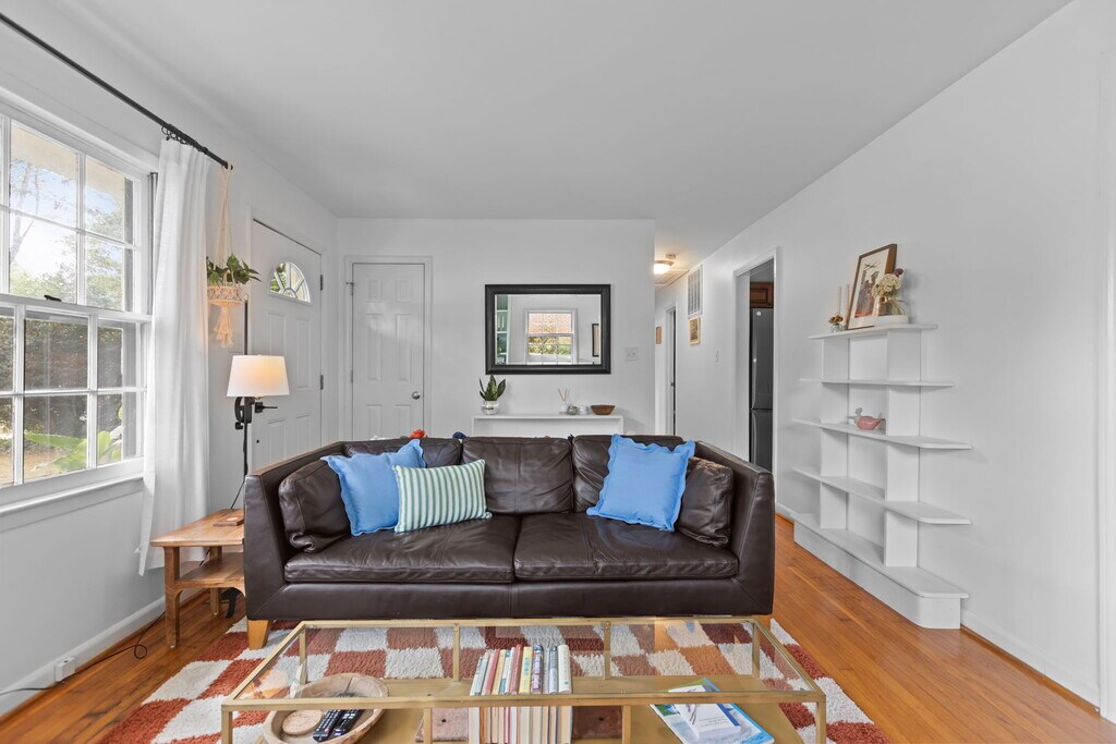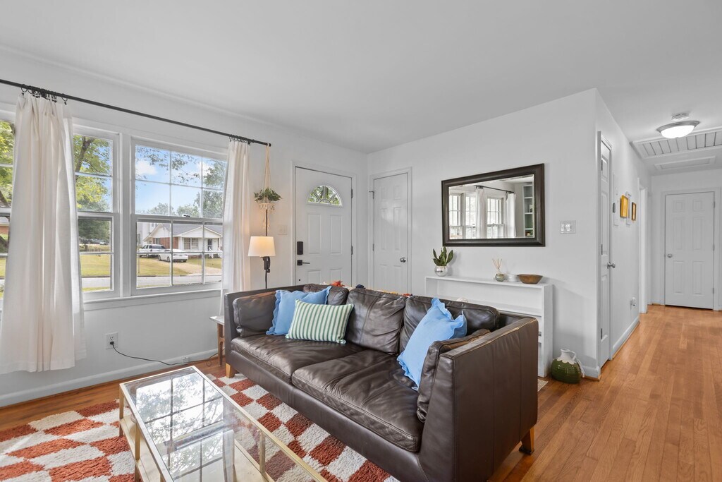 FLEXIBLE lease / Utilities & lawn care included Fully furnished home with tasteful decor and hardwood floors throughout. Spacious kitchen with modern appliances and ample counter space. Three bedrooms, two for rest and one set up as an office/reading room make it ideal for both comfort and remote work. Enjoy a screened-in porch overlooking the large yard, central HVAC for year-round comfort, and walking access to the greenway for jogging, biking, or leisurely strolls.