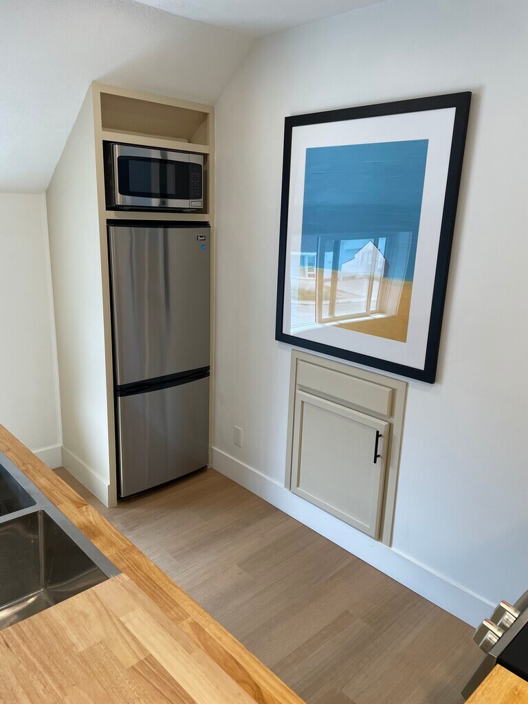 One year lease! Newly renovated. Stainless Steel Appliances including microwave, dishwasher, garbage disposal and range hood that vents outside. Dimmable overhead and under-cabinet LED lighting. Second floor unit with shared laundry in the entry area. New electric baseboard heat. Window air conditioner. Bedroom easily accommodates queen bed and will accommodate king bed. No water beds. Easy walk to NJ's Grocery, restaurants, wineries, and distillery. Lake Leelanau narrows access two blocks away. Shared back yard to enjoy grilling/firepit. Quiet neighborhood and building. Owner pays for trash removal, water/sewer. Tenant pays for electricity. Dresser and bar stools included. No pets. Application and credit check required (650 or better). Provide your email to get application.