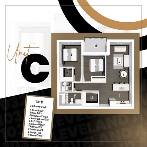 Layout C - Image 1 Apartment Unit: 404Apartment Model: Layout C2 Bedroom, 1 Bath, 940 sq ftAvailable Now