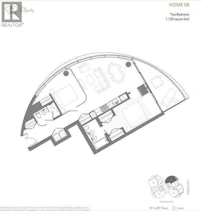 Luxurious 2-Bedroom Suite at The Butterfly - Downtown Vancouver Living Redefined! 1033 Nelson Ave,Vancouver World-Class Design by Bing Thom Architects - LEED Gold Certified Brand New 2-Bedroom,2-Bathroom Unit 1,130 sq.ft (1,006 sq.ft interior + 124 sq.ft exterior) Custom Italian Kitchen with Miele Appliances Eucalyptus Veneered Front Door - White Porcelain Flooring Floor-to-Ceiling Sheer Drapery - Curved Glass Walls Exclusive Building Amenities: 24-Hour Concierge - Sky Spa Pool - State-of-the-Art Gym Energy-Efficient Design Convenient Parking & Storage: 1 EV-Enabled Parking Stall - 1 Storage Unit - 1 Bike Storage Additional Details: Max Occupancy: 3 Utilities Not Included No Pets - No Smoking (id:52069) ID#: 2060221