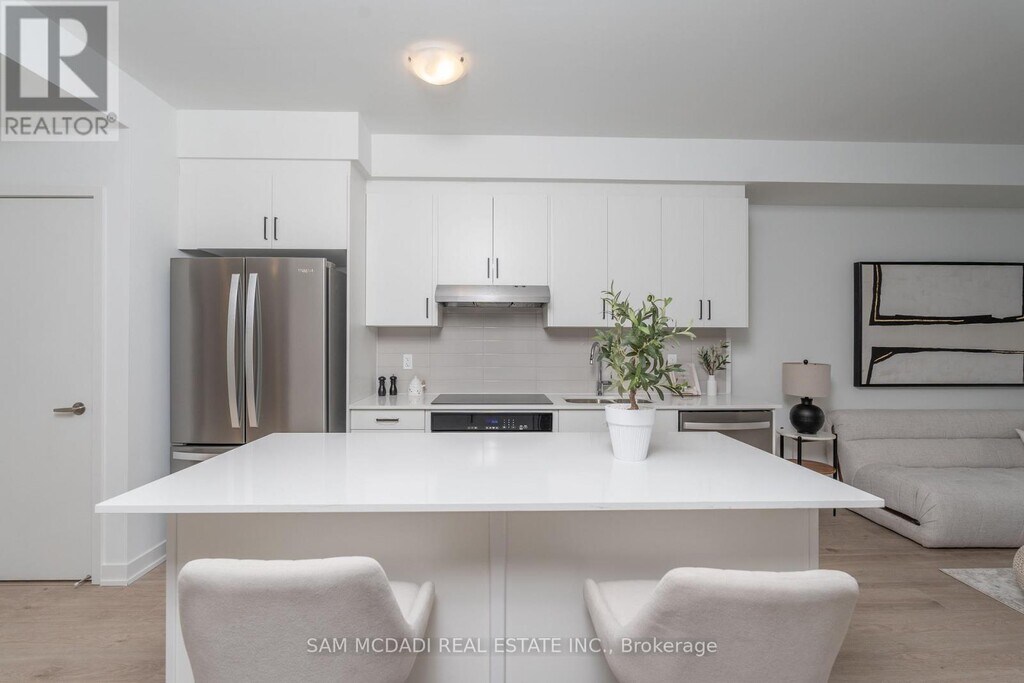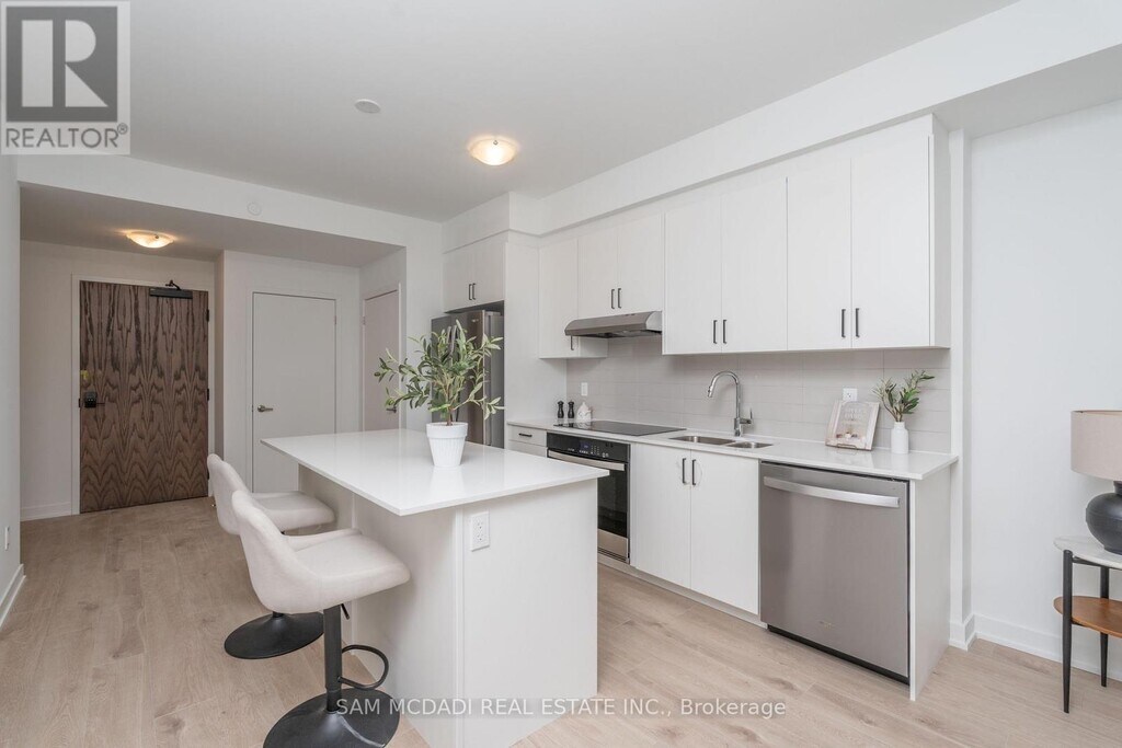 Fully Furnished Unit! Welcome to this new beautifully designed 801 sq. ft. condo in the sought-after Clarkson community! This modern unit is dressed to impress with modern furniture pieces for Tenant's use and features stunning vinyl hardwood floors and floor-to-ceiling windows,creating a bright and inviting open-concept living space. The spectacular kitchen is a chefs dream,boasting quartz countertops,a large centre island,and plenty of storage. The spacious bedroom offers two closets and convenient access to a gorgeous 4pc semi-ensuite,combining style and functionality. A versatile den provides the perfect setup for a home office or study. Additional highlights include a walk-in laundry room and thoughtfully designed finishes throughout. Located in a vibrant neighbourhood close to Jack Darling Park Memorial Park,Clarkson Go station,Port Credit's bustling restaurants,cafes,and boutiques,and more! Quick commute to downtown Toronto via the QEW! An exceptional place to call home! Building amenities will include a swimming pool,a gym,a roof top terrace/patio,a sauna,a pet washing station,and ample visitor parking. Internet,water and heat are included in the rent. Tenant's will be responsible for monthly hydro. (id:52069) ID#: 1417634
