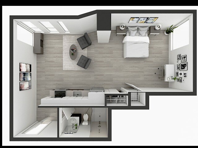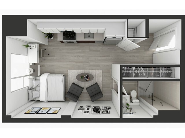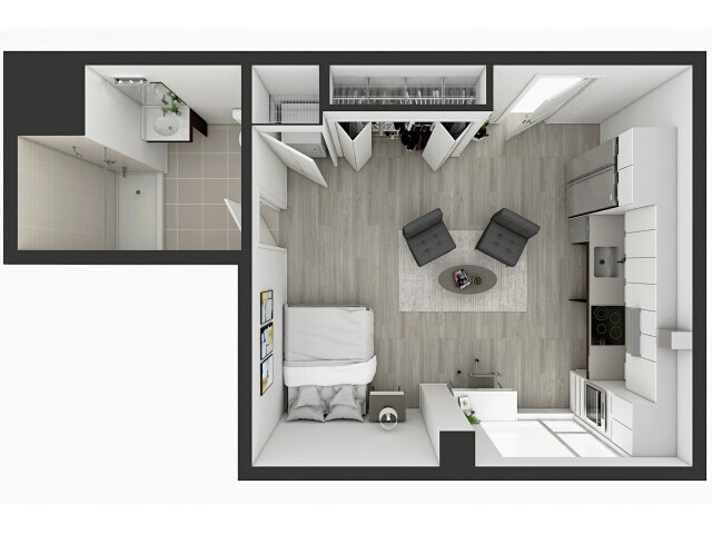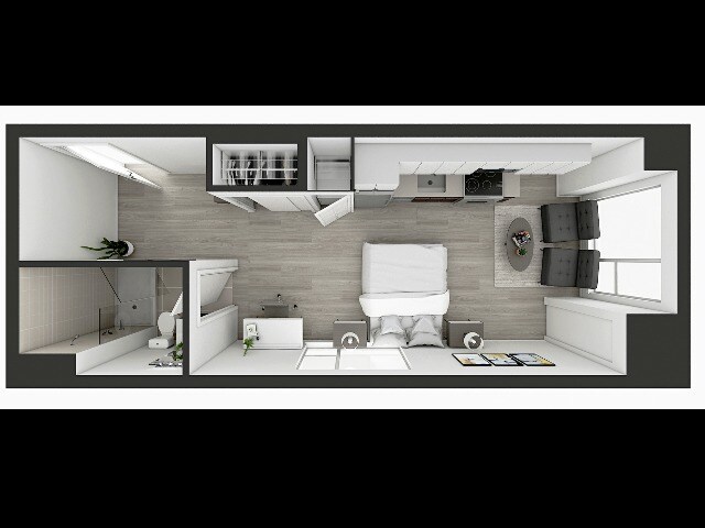 S1 - Floorplan 1 Apartment Unit: PrivateApartment Model: S1$2,970Studio, 1 Bath, 283-342 sq ftAvailable August 17, 2026Floorplan S2