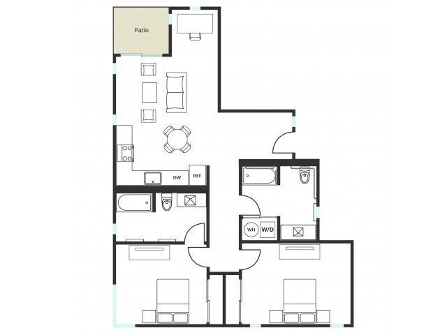 2 Beds, 2 Baths, 1175 sq ftLargest 2 BedroomThis is the largest 2 Bedroom at this PropertyModel Gallery