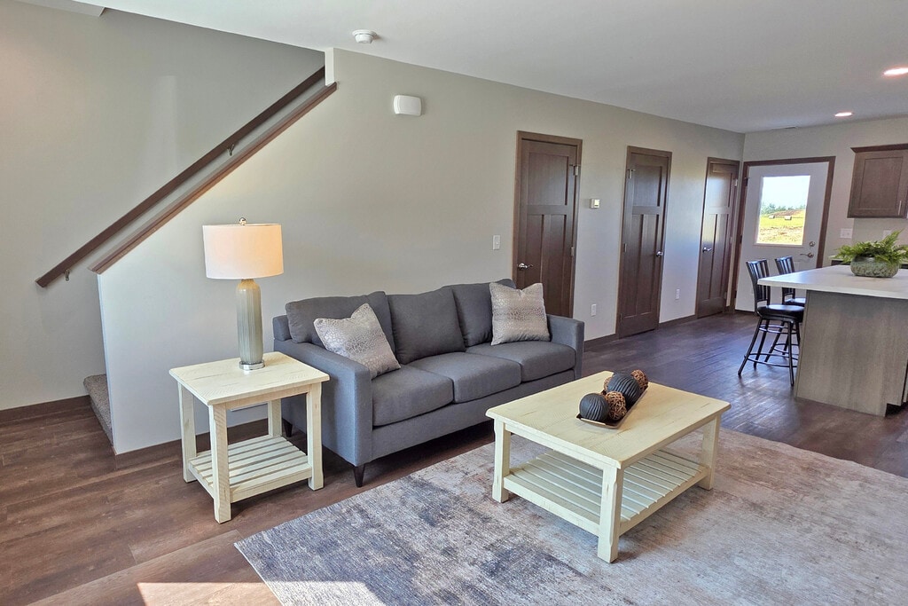 Welcome to Medary Creek Townhomes, a brand-new townhome community located in Aurora, South Dakota, just 10 minutes from Brookings. Enjoy small-town living with convenient access to city amenities. These townhomes feature private access, 2 bedrooms, 1 ½ bathrooms and parking spaces directly in front of each unit. Additional amenities include central air, an 8x8 concrete patio off the back, and parking spaces directly in front of each unit. The main level offers an open-concept floor plan, seamlessly connecting the spacious living area to the kitchen. Hardwood floors run throughout the main level, complementing the beautiful stainless-steel appliances, including a dishwasher, electric flat-top range, microwave, and refrigerator with water and ice in the door. The kitchen also boasts a very spacious pantry, a large island with seating, and cabinetry with soft-closing mechanisms and stainless-steel hardware. For your convenience, a half bathroom is located off the living area. Upstairs, you will find 2 bedrooms, a full bathroom, and a laundry area. The hardwood flooring extends from the main level into the bathroom, while the bedrooms feature luxurious carpeting and large closets, including a second walk-in closet in the master bedroom. Lawn care, snow removal, and curbside garbage collection are all provided. Pets are welcome with a deposit and pet rent. Don’t miss out on this beautiful new home—call, text, or email today for more details and to submit your rental application(s) to schedule a showing!