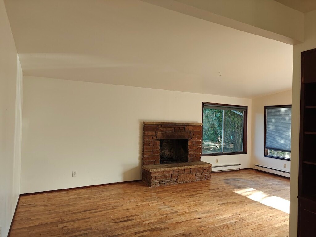 Charming 3-bedroom home with a cozy stone fireplace and gleaming hardwood floors in the spacious living room. Freshly painted inside and out, this home offers an easy-flow floor plan with a kitchen off the dining area and slider access to the carport. The large, level yard is ideal for outdoor gatherings, gardening, or play, and there's plenty of parking.
