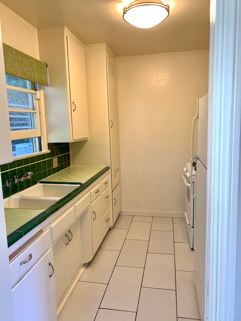 1 Bedroom 1 Bath Lower Unit New paint Real Wood Floors Beautiful Crown Molding Vintage Tile/Tile Floors Refrigerator Stove/Oven Built-in cabinetry Non Smoking Building Designated Covered Parking Space & plenty of street parking Coin Laundry on site Water & Gardener Paid for by owner Quiet Neighborhood Friendly Management Lovely little garden with rose arbor & lemon tree No Pets Please