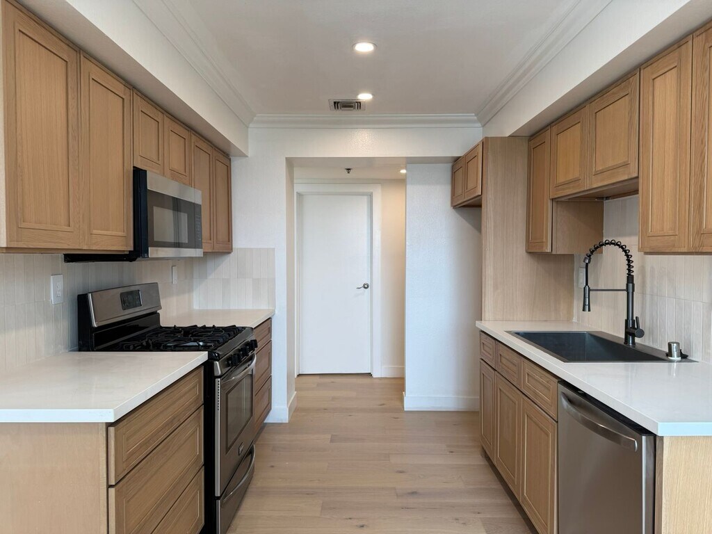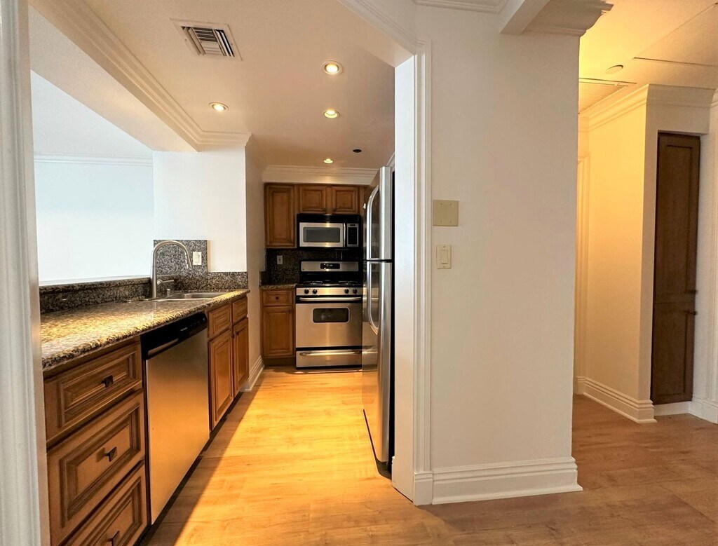 Welcome to your dream home on the Wilshire Corridor in Los Angeles! This luxury two-story penthouse boasts approximately 1,375 square feet of living space and has been recently renovated with all new features. As you enter, you will be greeted with beautiful new wood floors that flow throughout the living room, dining area, and bedrooms. The open concept living room and dining room are perfect for entertaining guests, and the large windows provide abundant natural light. The apartment features a brand-new modern kitchen with stone counter tops and stainless-steel appliances, including gas range/stove, dishwasher, and microwave hood. The washer and dryer are conveniently located inside the apartment, making laundry day a breeze. The two bedrooms are both generously sized, and each has its own updated bathroom and walk-in closets. The bathrooms feature sleek finishes, including white stone counter tops, modern fixtures, and elegant tile work. This full-service doorman building provides an added level of security and convenience, ensuring that you feel safe and comfortable in your new home. The building also offers additional amenities, such as a fitness center and a rooftop deck with panoramic views of the city. Located on the prestigious Wilshire Corridor, this apartment is close to some of the best shopping, dining, and entertainment options in Los Angeles. Excellent school district. Don't miss your chance to live in this luxurious apartment and experience the best that the city has to offer! Note: Advertised rent reflects effective monthly rate after one (1) month free on a standard 13-month lease term, available only on approved excellent credit and subject to additional terms and conditions. All terms, including rent, availability, and concessions, are subject to change without notice, availability is not guaranteed, this is not a formal offer to lease, and final terms are governed by the executed lease agreement—Equal Housing Opportunity.