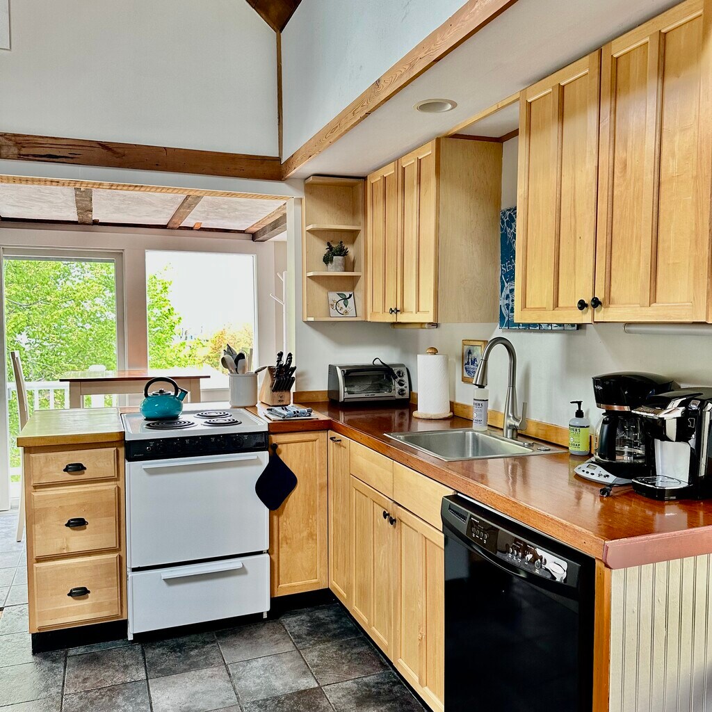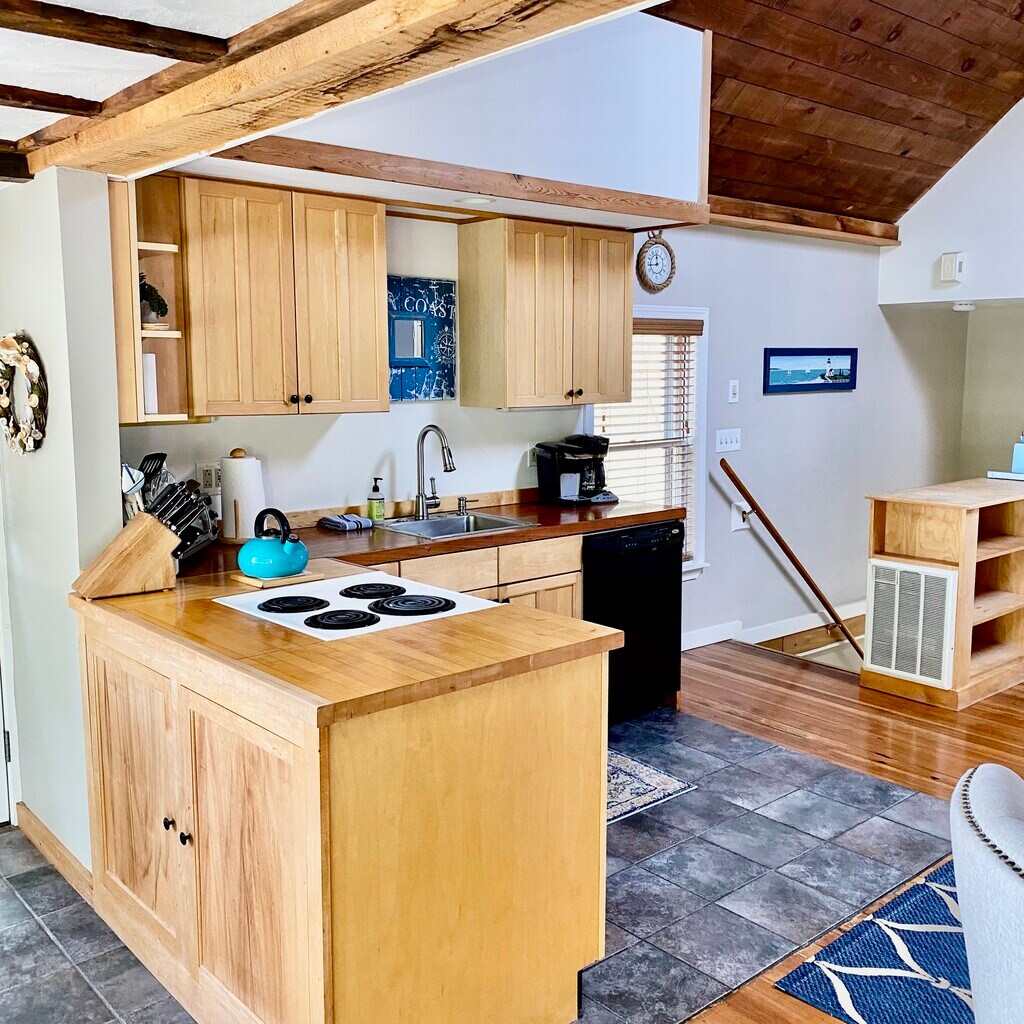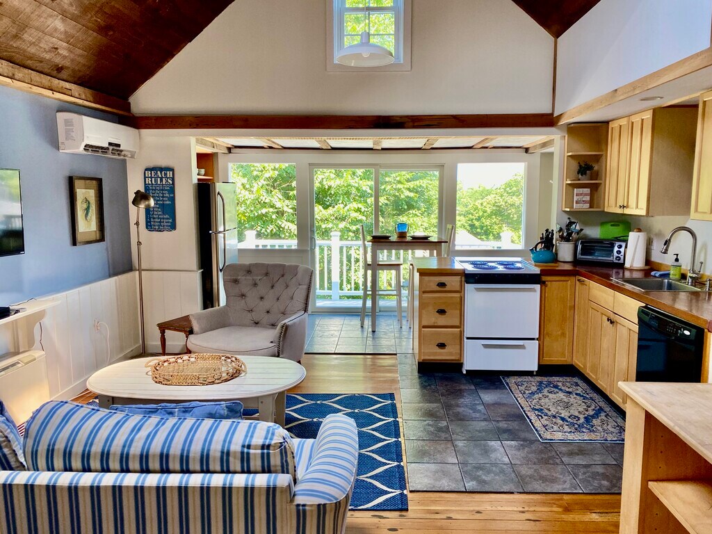 This listing is for a winter rental only starting October 1, 2024 to April 30, 2025. "The Loft" located in the quaint seaside village of Lanesville, (Gloucester) is perfect for one or two people looking to spend their winter in Gloucester with a view of Lanes Cove and Ipswich Bay beyond. The Loft has recently been updated with a brand new bathroom (walk-in shower), new deck and new queen Nectar mattress. The Loft comes with a fully stocked kitchen and is fully furnished with nice, coastal decor. High ceilings, hard wood floors and skylights make this space bright, warm and welcoming. The Loft is situated between the Lanesville Package and the Cove Cafe and Post Office so you can get delicious Dom's marinated meat for dinner at the packie and then breakfast and sandwiches at the Cafe. Parking is free (on street) and you can typically find a spot right in front of the Loft. Rent includes electric, internet and cable. Propane heat is the tenants responsibility. Dogs allowed with a deep cleaning at end of rental paid by tenant.