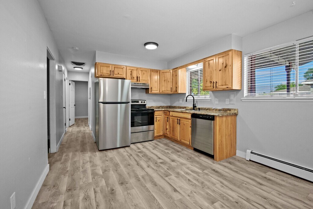 Remodeled 2 bed, 1.5 bath apartment in Fruita. Modern finishes, bright layout. Water, sewer, trash, and gas included. Tenant pays $50/month utility charge. $1,450/month rent, $1,450/ deposit. Convenient location near parks and downtown. Pets considered with a $35/month pet rent and $300 refundable pet deposit. Schedule your showing today!