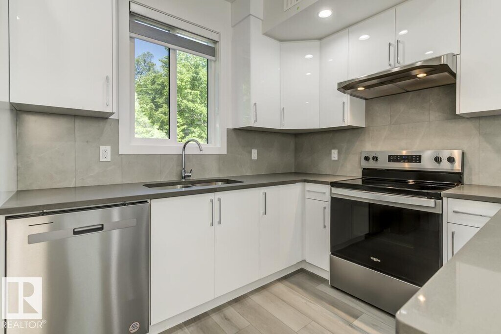 Be the first to enjoy elevated living in this brand-new boutique development,ideally located in one of Edmonton’s most sought-after communities. This spacious and stylish 2 bedroom,2 bathroom condo offers a large floor plan of open-concept living with high-end modern finishes throughout. Inside,you'll find oversized windows that flood the space with natural light,a designer kitchen with quartz countertops,large island with bar seating,full-height backsplash,and a full stainless steel appliance package including built-in microwave and in-suite laundry. Both bedrooms are generously sized,with two sleek bathrooms—perfect for shared living or work-from-home flexibility. This professionally managed 6-unit building is designed for quiet enjoyment,offering the exclusivity of boutique living with the convenience of being steps from the University of Alberta,Whyte Avenue,transit,cafes,shops,and the River Valley. Heat and water are included. 3 Suites Left. (id:52069) ID#: 2037400