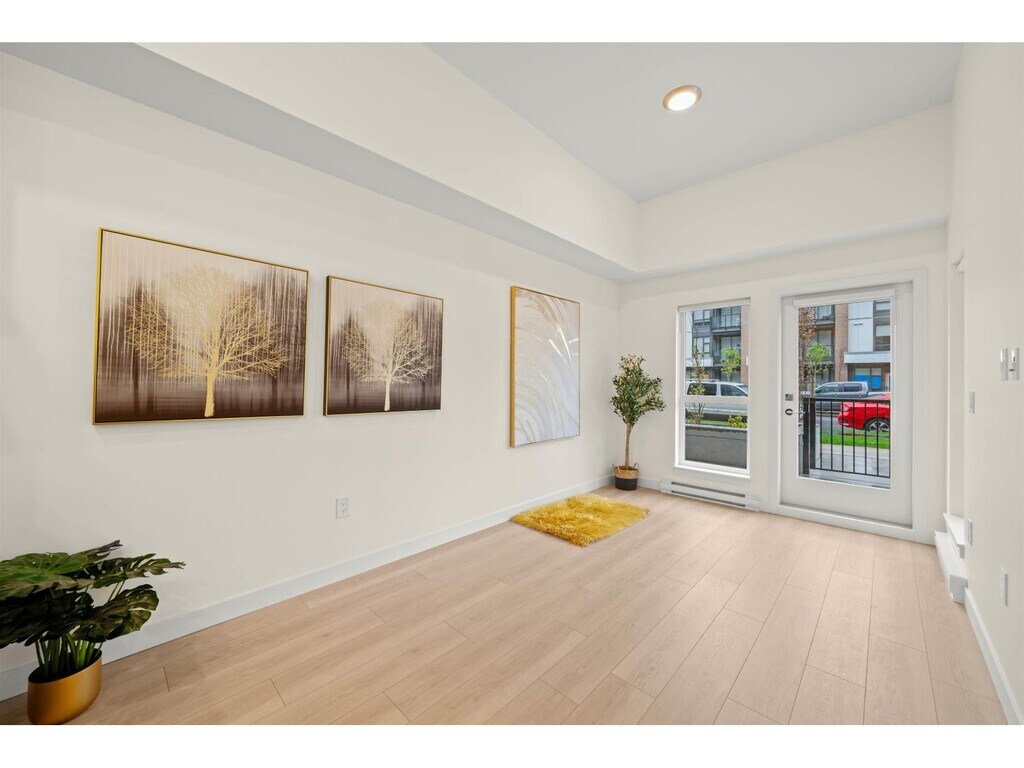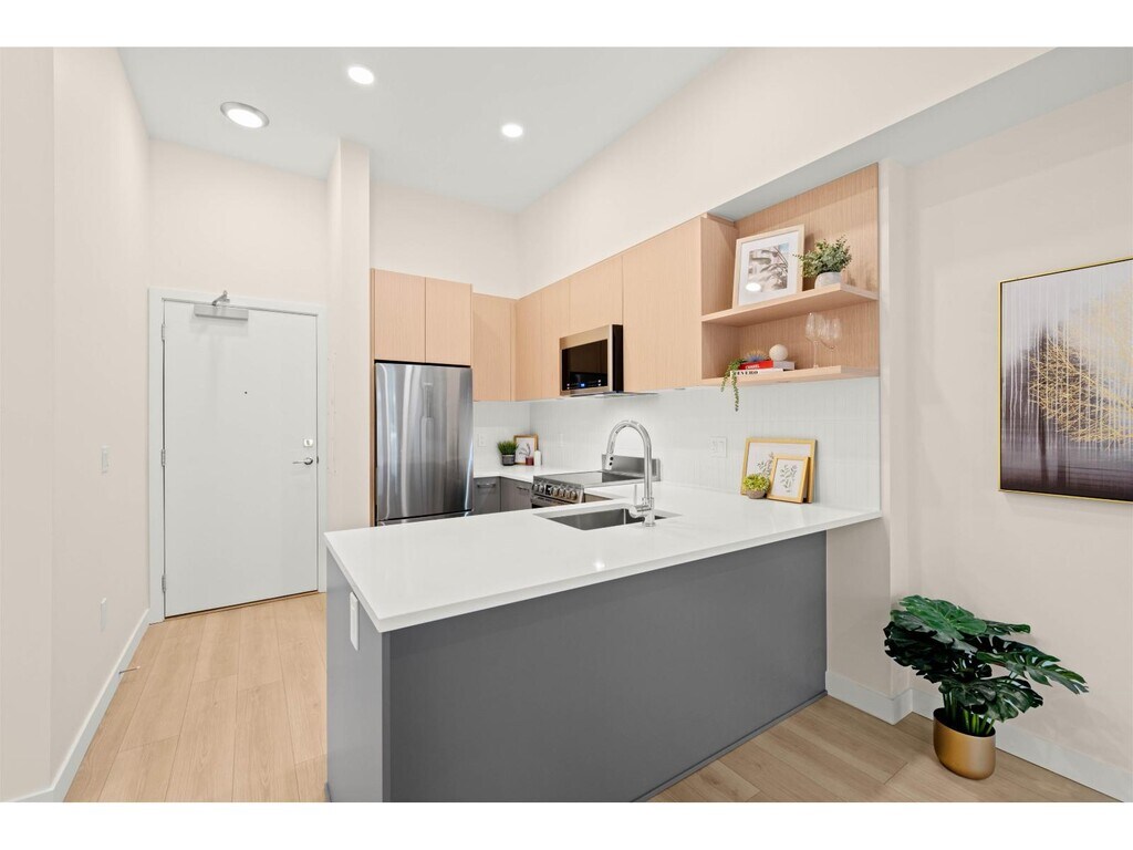 Virtually brand new! Phenomenal garden level home with SOARING high 10'7ft ceilings,a HUGE 170 sq.ft. private gated patio with additional SEPERATE entrance! Open concept 1 bedroom unit features an extremely efficient floorplan and high-end finishes throughout including beautiful quartz counter tops,engineered wide plan flooring,Energy Recovery Ventilation (ERV) for year round comfort/ air quality and MUCH,MUCH MORE! Q5 built by reputable developer Tien Sher features resort like amenities including a FULLY equipped gym,business centre,games room,shared garden space entertainment lounge,outdoor bbq area children's play zone and more. Centrally located close to shopping,amenities and steps to Gateway Skytrain,SFU. 1 parking and 1 storage. (id:52069) ID#: 1989990