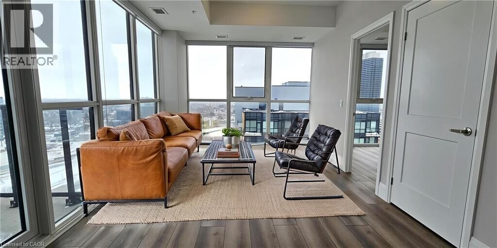 STUNNING 1-BEDROOM,1-BATH CONDO IN THE HEART OF DOWNTOWN KITCHENER! Welcome to this bright and modern 25th-floor condo offering exceptional city views. This spacious CORNER unit features an open-concept,carpet-free layout and a private balcony to take in the skyline. The kitchen showcases sleek finishes,and in-suite laundry adds everyday convenience. The bedroom is highlighted by a wall-to-wall,floor-to-ceiling window,while the 4-pc bathroom offers a touch of luxury. Includes 1 underground private parking space. The building provides top-notch amenities,including a gym,media room,rooftop terrace,and a refreshing pool. Ideal for young professionals,this location is just steps from vibrant shops,Kitchener Market,scenic parks,schools,City Hall,and convenient transit options. Please note: hydro and tenant insurance are the responsibility of the tenant(s). Strong credit and a completed application are required. No pets preferred. Available for immediate move-in! Virtually staged. (id:63800) ID#: 1750694