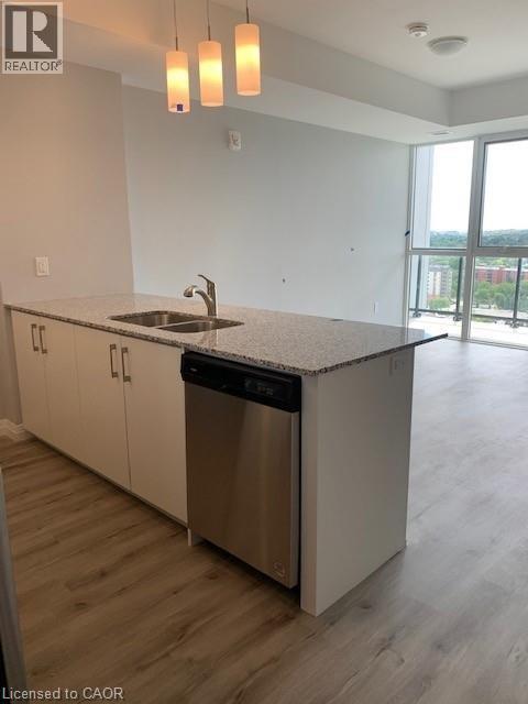 ONE MONTH FREE RENT,if you rent this place by April 1st,2026. Check out this One Bed + Den + Balcony + One Parking Spot + Heating + Cooling + Water + Internet that are included! PLUS a whole lot more! Almost 700 sq ft of space on the 18th floor looking south & west toward Victoria Park and the setting sun! This one Bed + Den has been well kept and well maintained. PLUS,it has tons of upgraded features including flooring,cabinets,countertops and window coverings. Carpet-free with easy to maintain laminate hardwood. Granite countertops in the Kitchen & Bath. Stainless steel appliances. Taller Kitchen cabinets and an island with an overhang for a perfect Breakfast Bar arrangement. Upgraded widow shades and blackout blinds in Bedroom. Convenient In-suite Laundry in a separate Laundry Closet. Large windows that actually open! And a cozy Balcony to catch the sunsets! Another plus is that the Garment Street Condos have a ton of amenities,like the gorgeous lobby/secure touchscreen intercom system,the secure underground parking & outdoor parking lot for visitors or a second parking spot. It has a bike storage room,a yoga studio,a fitness room,a media & party room with a kitchen,plus a huge outdoor terrace area with a pet run,greenspace,community BBQs,lounge chairs,an outdoor swimming pool,and a half-court basketball court! PLUS,THE CONDO PROVIDES YOUR HEAT,YOUR COOL,YOUR WATER,AND INTERNET!? Only Hydro is extra. PLUS,this location is close to everything Downtown Kitchener has to offer! It is in the centre of the Tech Hub,next door to the Health Sciences Campus of U of W & Google. Steps from bus routes,the Ion,all kinds of food,drink & entertainment options and the historic Victoria Park. Live next to the all year-round multi-cultural Carnivals,Festivals,and Special Events that Downtown Kitchener has to offer! Plus,a really great Landlord!! With so many PLUSSES,it is hard to find anything negative about this condo! Hurry and come check it out! (id:63800) ID#: 1967416