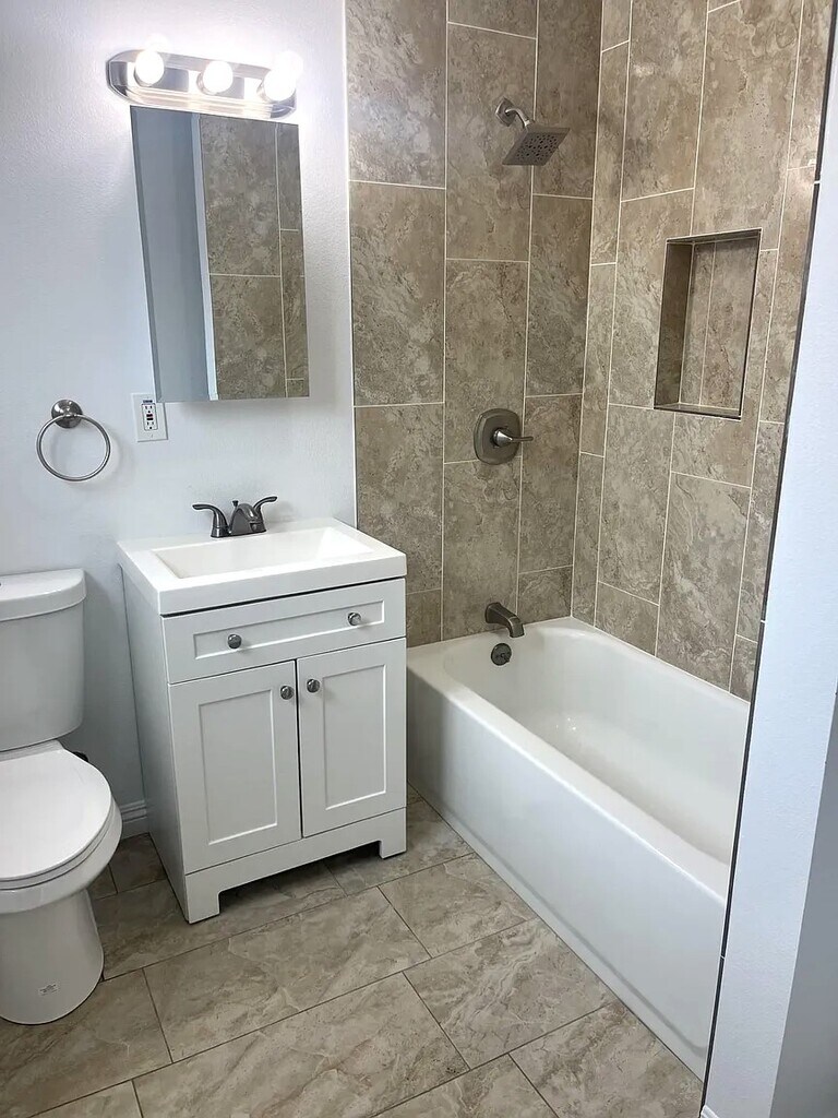 Newly remodeled 1 bedroom, 1 bathroom apartment available for move-in now! This upstairs unit boasts a modern, brand-new kitchen complete with a tiled backsplash, quartz countertops, shaker cabinets, new microwave, stove, hardware, and sink. The entire apartment features new flooring and a wall AC unit for comfortable living. Enjoy ample storage space with a large walk-in closet and appreciate the fresh new paint and lighting fixtures throughout. The bathroom has also been fully remodeled with a bathtub, new 12" rain shower, toilets, and a sleek new sink vanity. Convenience is key with an in-unit stackable washer and dryer, making laundry a breeze. One designated carport plus street parking is available, and the apartment is centrally located near Disneyland, several restaurants, and the 5 freeway. Don't miss out on this fantastic opportunity! CALL FOR PRIVATE SHOWING Lease Term: The lease shall be for a term of 12 months. Security Deposit: The Tenant shall pay a security deposit in the amount of $1,000 and is due upon application approval to reserve unit. Pet Deposit: A pet deposit of $500 is required for each pet that the Tenant wishes to keep on the property. Utilities: The Tenant shall pay for their own electricity and internet services during the lease term. Parking: The Tenant shall have the use of one reserved carport space for the duration of the lease term, as well as street parking as available.