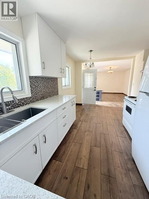Step into this beautifully updated bungalow featuring 3 generously sized bedrooms and the convenience of main floor laundry. The private backyard backs onto open space with no rear neighbors. Located in a peaceful,family-oriented neighborhood,the home is directly across from St. Michael's School. Enjoy quick access to Highway 401 and proximity to a wide range of local amenities,making it an ideal location for commuters,Main Level only (id:52069) ID#: 2217869