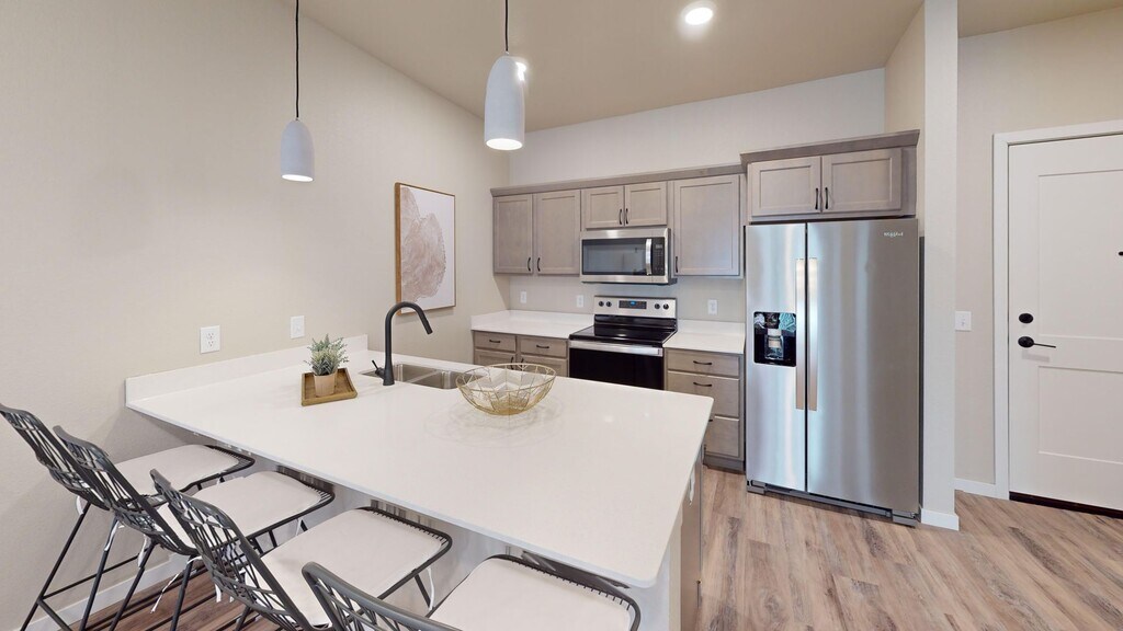 Welcome to 10Bedrock in Box Elder, SD! This modern apartment complex offers a convenient elevator, central air for comfort, and a fitness room for residents to stay active. Pamper your furry friends at the pet spa or enjoy a refreshing dip in the outdoor pool with grills on the pool deck for outdoor cooking. Residents can take advantage of the package room for easy deliveries and stainless steel appliances in each unit. The outdoor dog area is perfect for your four-legged companions to play. Stay connected with included fiber internet and enjoy the sleek design of quartz countertops and crown molding. Rest easy knowing security cameras are in place and garages are available for added convenience. Experience luxury living at 10Bedrock!