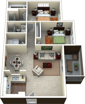 2 Beds, 2 Baths, 1158 sq ftAvailable NowLargest 2 BedroomThis is the largest 2 Bedroom at this PropertyModel Gallery