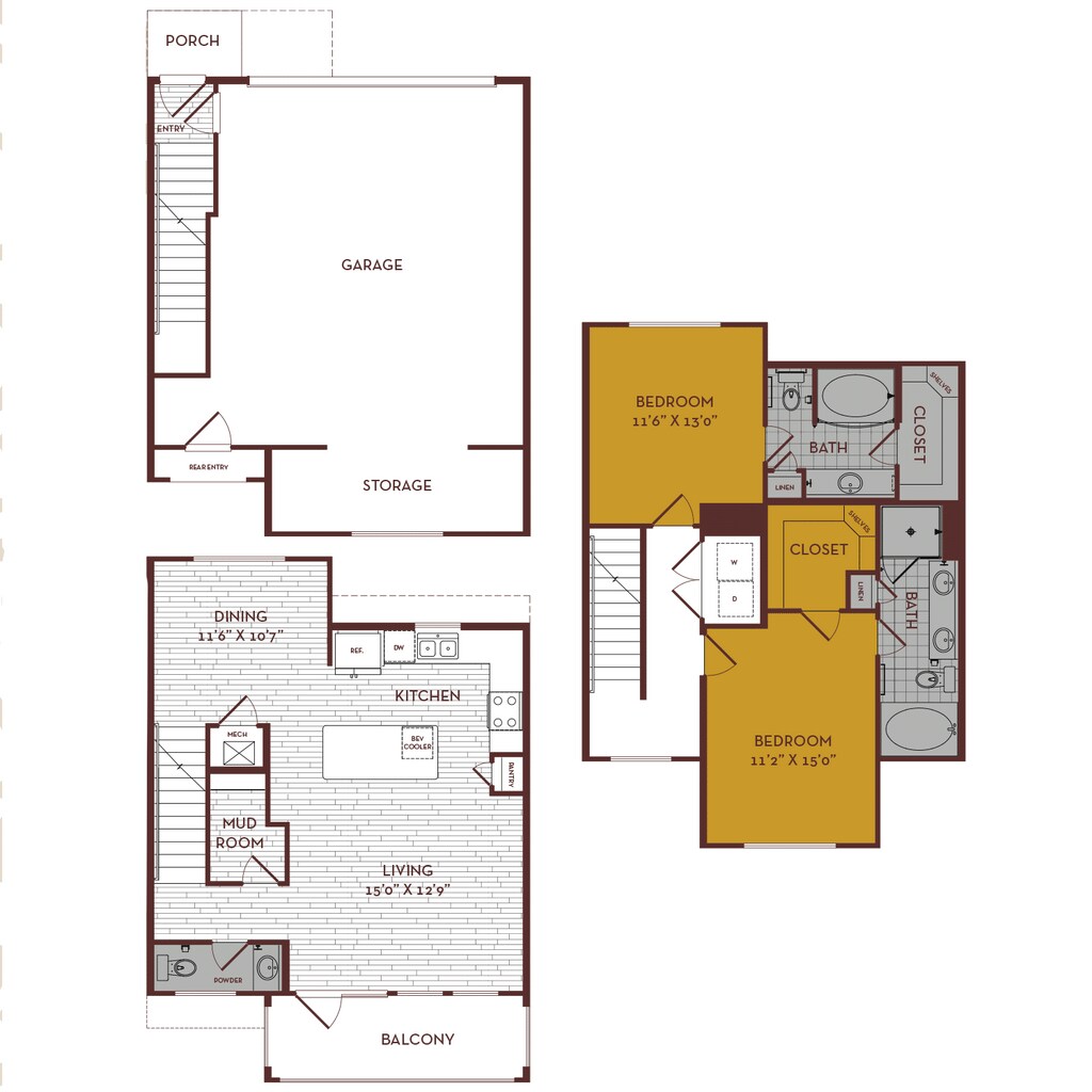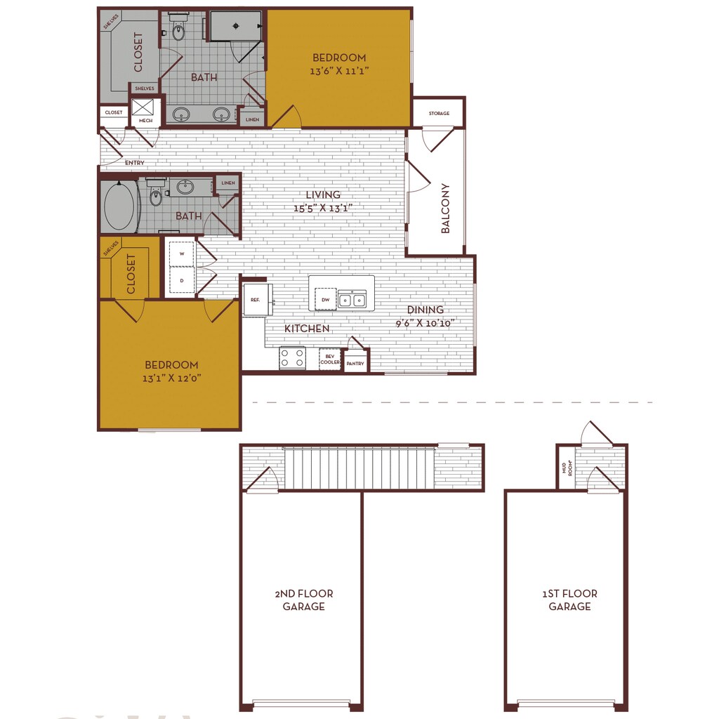 2 Beds, 2.5 Baths, 1452 sq ftLargest 2 BedroomThis is the largest 2 Bedroom at this PropertyModel Gallery