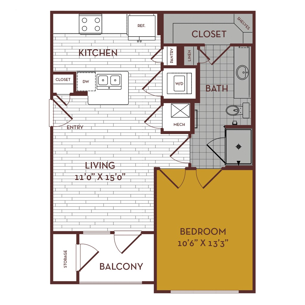 Apartment Model: A1From $1,5391 Bedroom, 1 Bath, 624 sq ftAvailable Now![]()