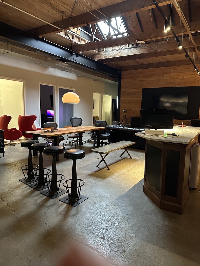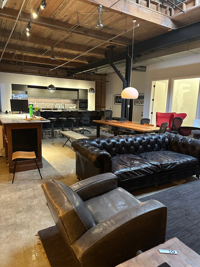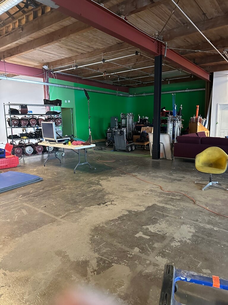 This Manhattan style loft was used for 17 years by videographer so it has a white screen and a green screen 10,000 ft.² $4800. this is a very unique space lots of exposed brick a whole wall of windows facing south two bathrooms, slop sink, beautiful high-end kitchen, skylights concrete floor, beautiful old industrial sliding doors. This is a very cool space if you are creative you are going to love it if you are not you will probably hate it !